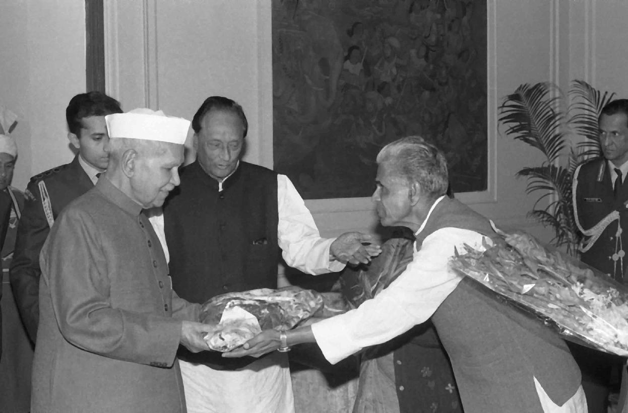 | Caption: | The President of India, Dr. Shankar Dayal Sharma receiving copies of the books "Gandhi Subhash and Quit India Movement" from Shri P.S. Ramu and "Vedic Architecture and Art of Living" from Dr. B.B. Puri at Rashtrapati Bhavan in New Delhi on December 26, 1995. |
