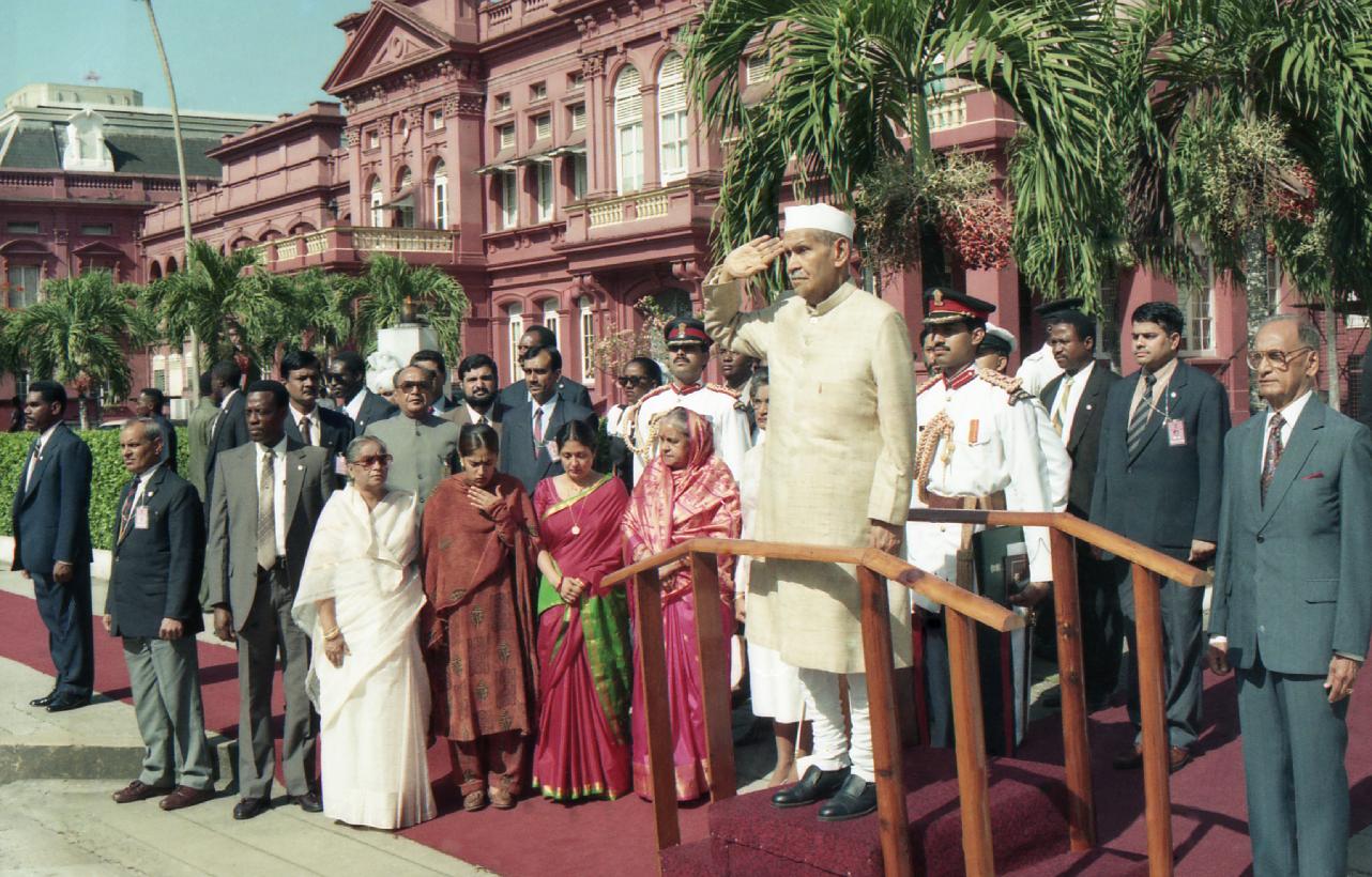 | Caption: | The President of India, Dr. Shankar Dayal Sharma inspecting Guard of Honour before addressing the Parliament of Trinidad and Tobago, at Port of Spain on May 30, 1995. |
