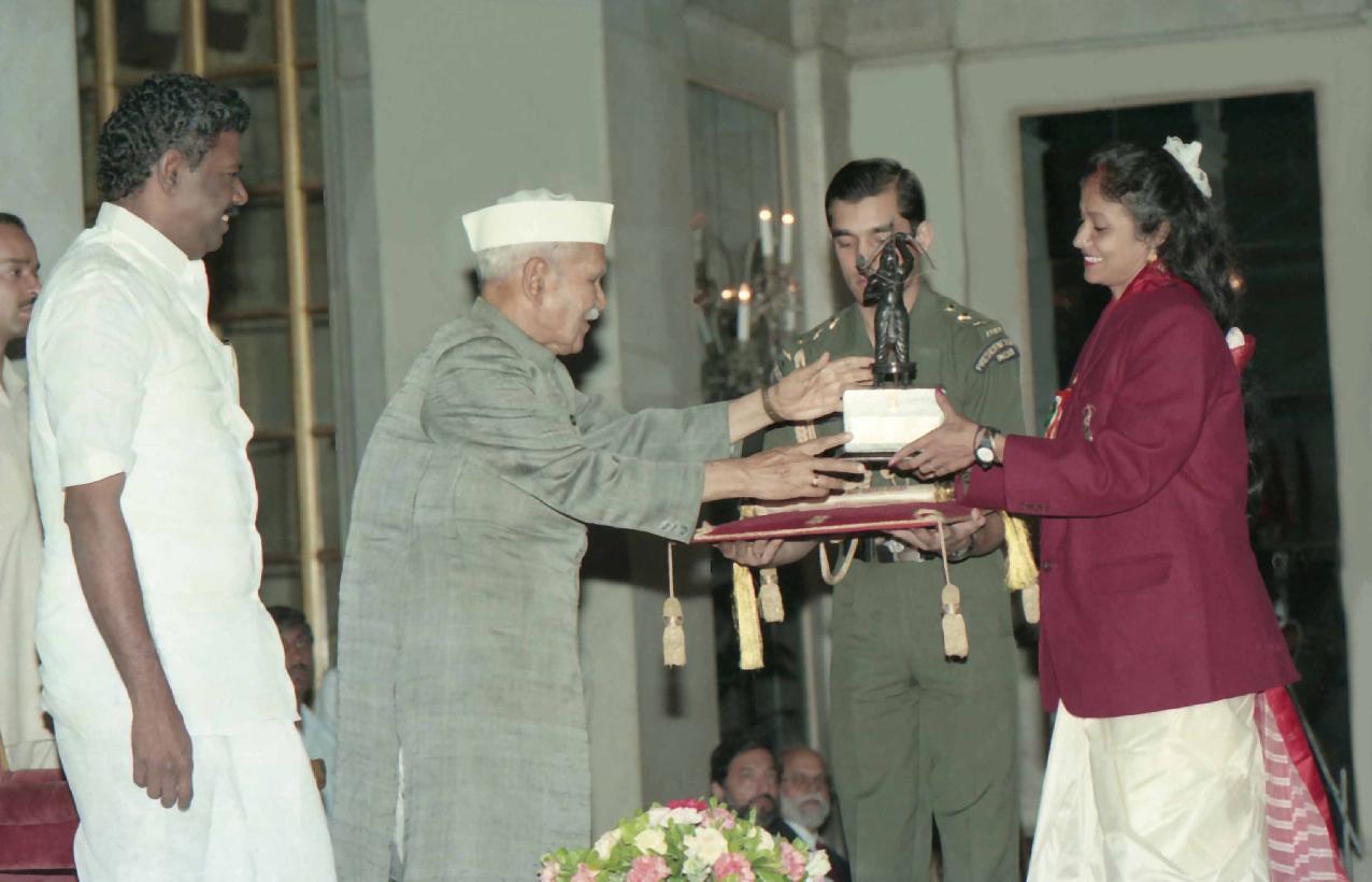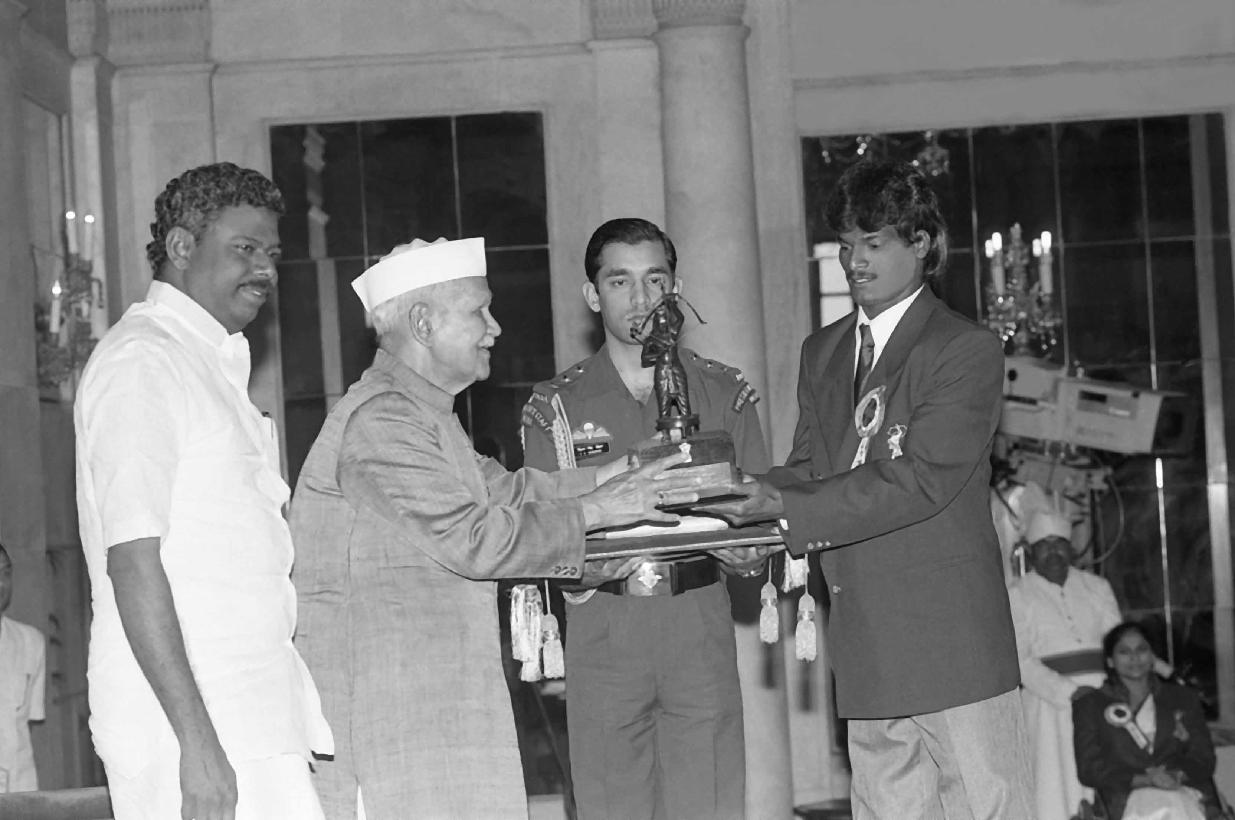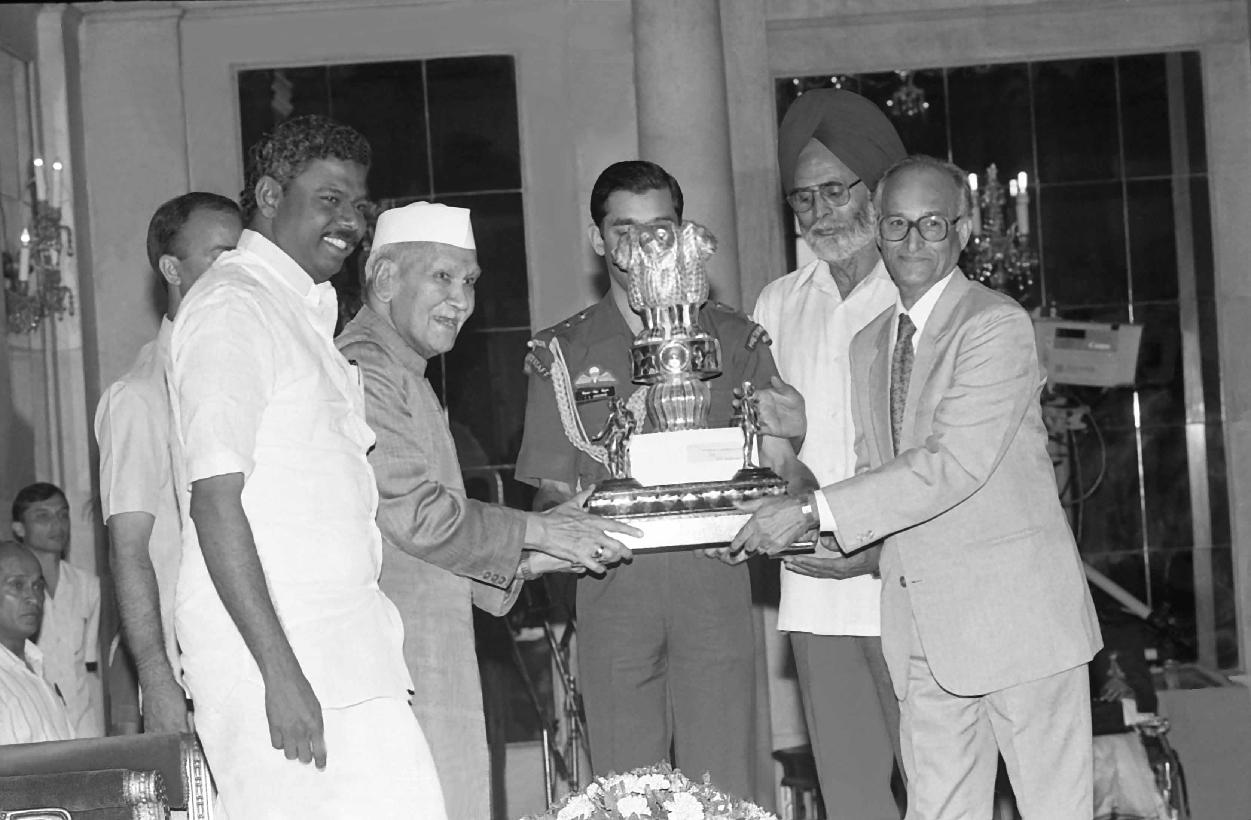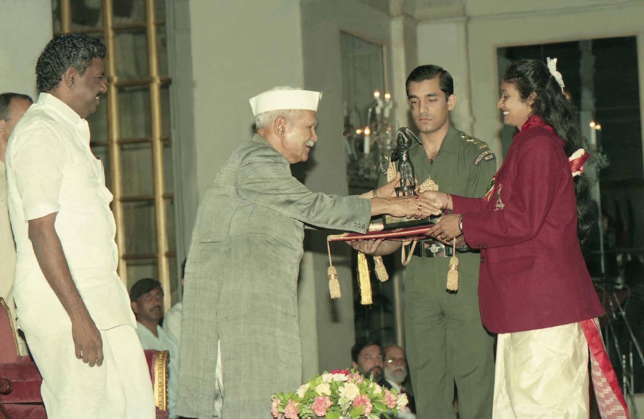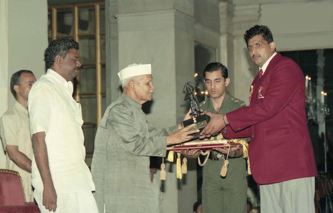 | Caption: | The President of India, Dr. Shankar Dayal Sharma presented Rajiv Gandhi Khel Ratna Award, Dronacharya Award, Arjuna Award and Maulana Abul Kalam Azad Trophy at Rashtrapati Bhavan in New Delhi on August 29, 1996. |