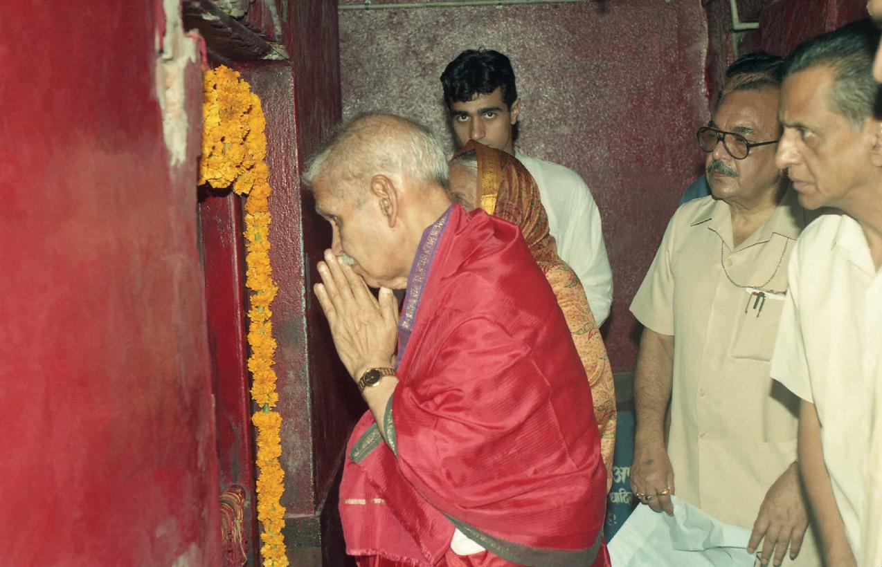 | Caption: | The President of India, Dr. Shankar Dayal Sharma visiting Kali Khoh Temple, at Mirzapur, Uttar Pradesh on August 22, 1996. |