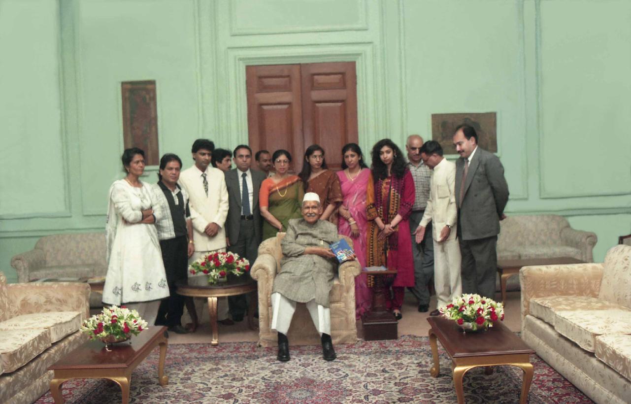 | Caption: | The President of India, Dr. Shankar Dayal Sharma receiving a copy of the book "Udyog Or Suraksha" co-authored by Shri B.L. Vohra, IG, CISF and Shri S.K. Singh, ACP (Security), RB at Rashtrapati Bhavan in New Delhi on August 29, 1996. |