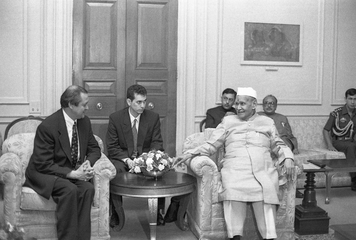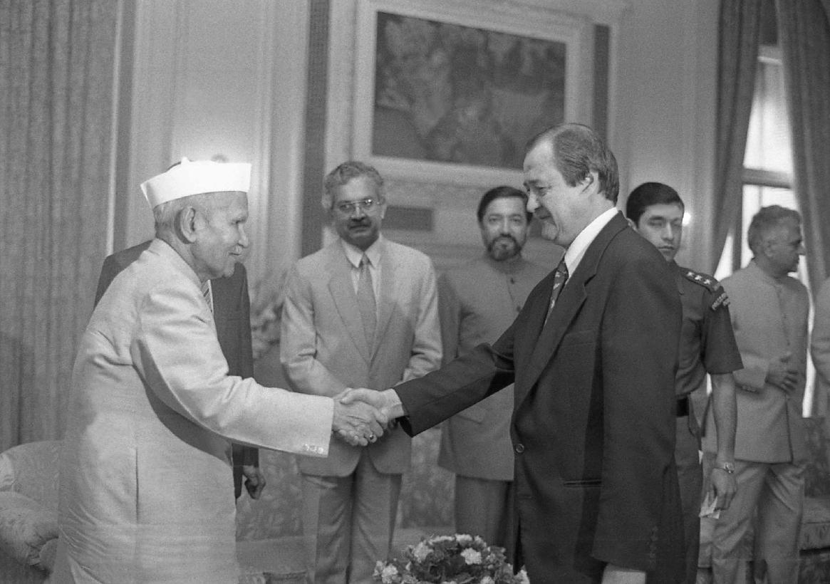 | Caption: | The President of India, Dr. Shankar Dayal Sharma meeting with H.E. Mr. A. Kamilov, Minister of Foreign Affairs, Republic of Uzbekistan at Rashtrapati Bhavan in New Delhi on August 23, 1996. |