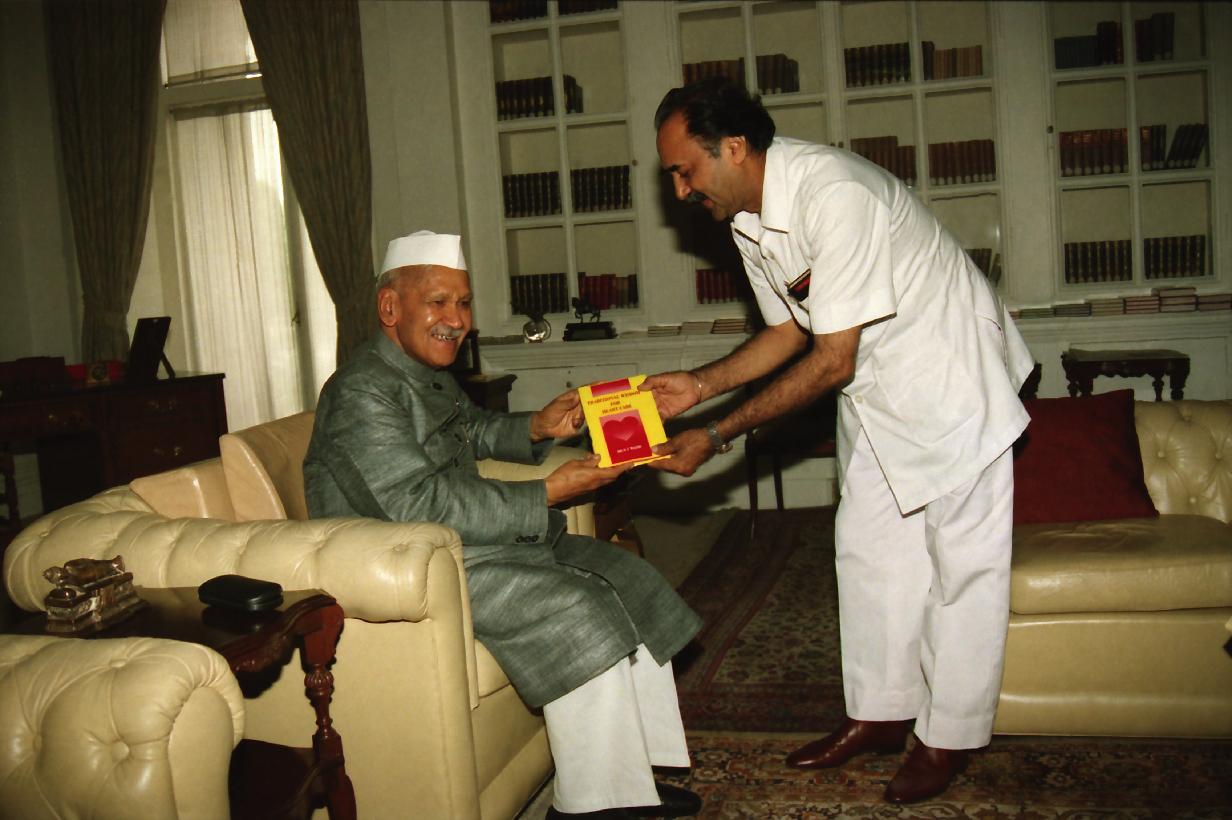 | Caption: | The President of India, Dr. Shankar Dayal Sharma receiving a copy of the book from Dr. Wazir at Rashtrapati Bhavan in New Delhi on August 25, 1995. |