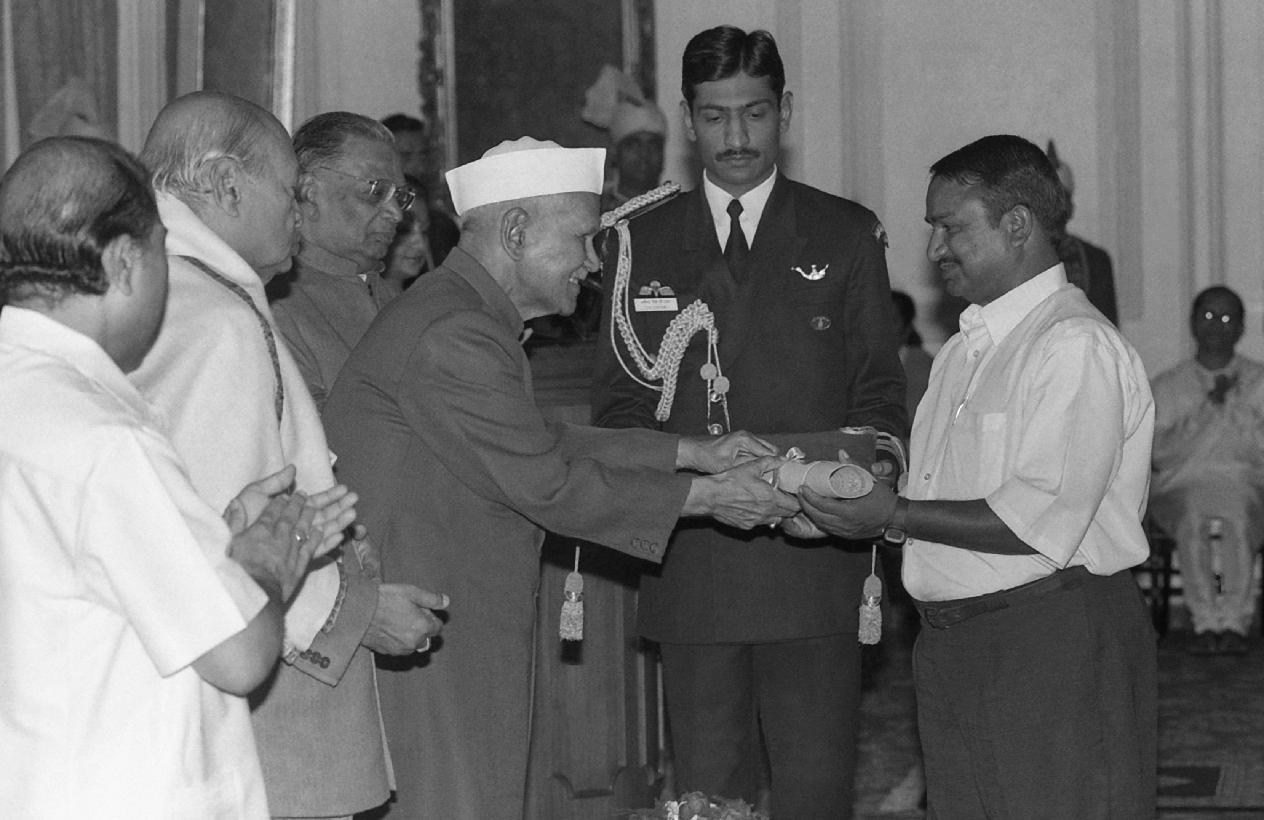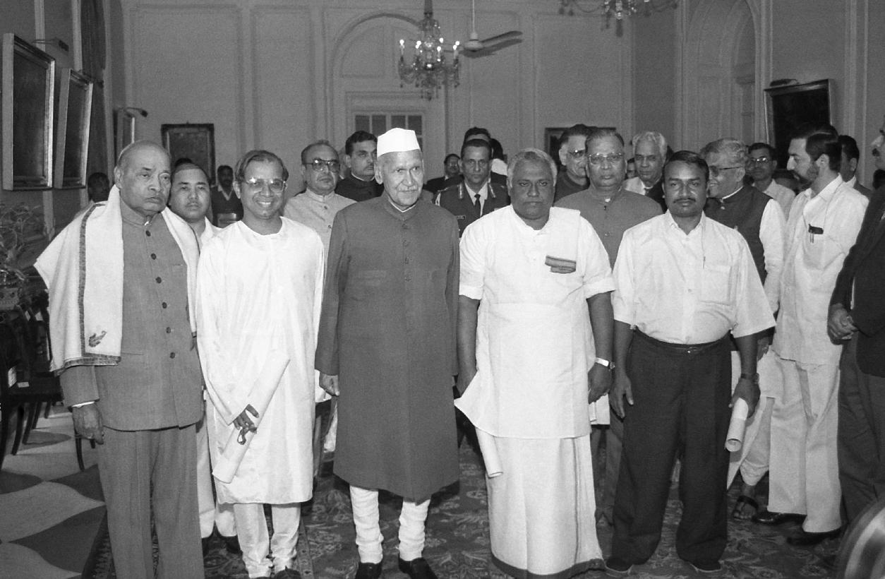 | Caption: | The President of India, Dr. Shankar Dayal Sharma presenting Kabir Puraskar at Rashtrapati Bhavan in New Delhi on November 19, 1995. |