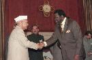 | Caption: | The President of India, Dr. Shankar Dayal Sharma and Smt. Vimala Sharma meeting with the Prime Minister of the Republic of Namibia, Rt. Hon. Mr. Hage G. Geingob and Mrs. Loine K. Geingos, at Rashtrapati Bhavan in New Delhi on November 25, 1995. |