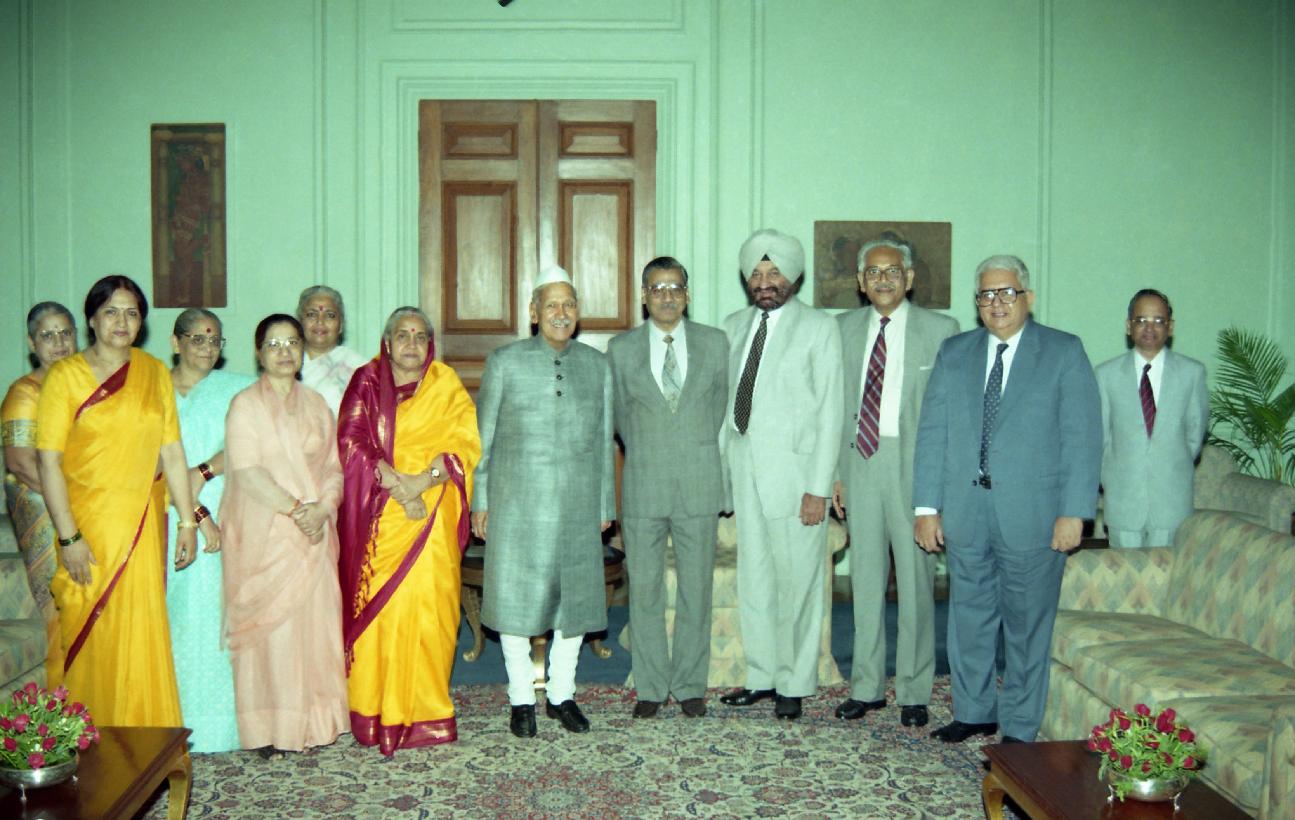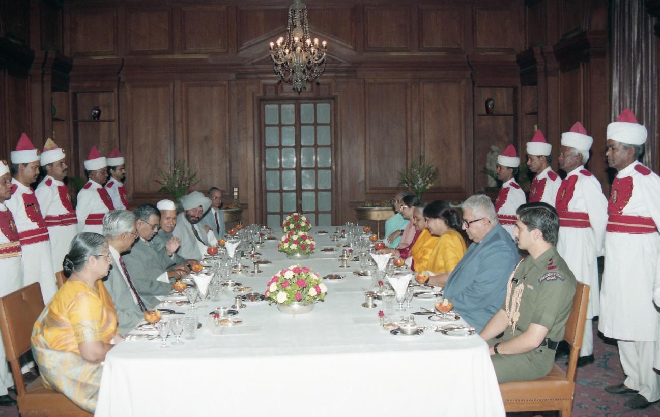 | Caption: | The President of India, Dr. Shankar Dayal Sharma hosting Dinner in honour Chief Justice of India, Shri Aziz Mushabber Ahmadi at Rashtrapati Bhavan in New Delhi on May 11, 1995. |