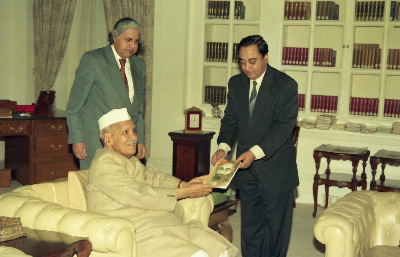 | Caption: | The President of India, Dr. Shankar Dayal Sharma receiving a copy of the book from Shri Anil Chandra & Narendra Kumar at Rashtrapati Bhavan in New Delhi on January 15, 1996. |