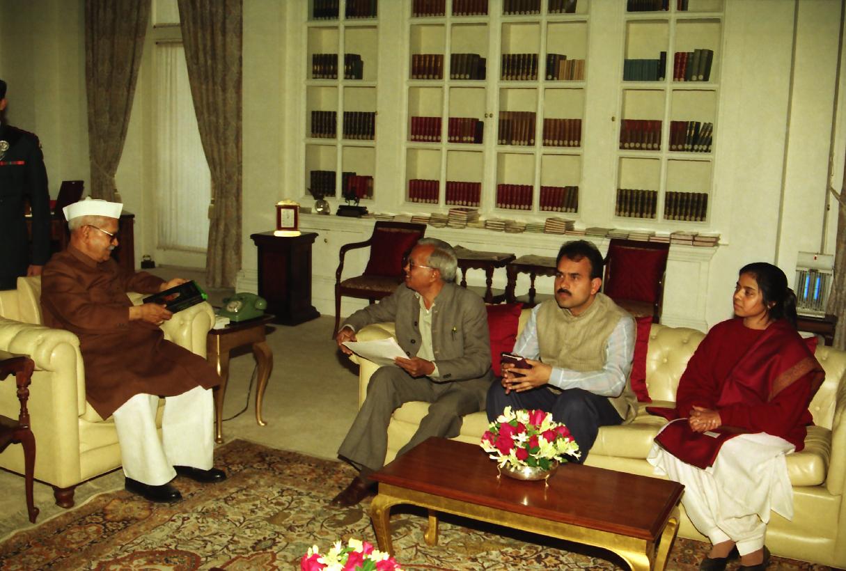| Caption: | The President of India, Dr. Shankar Dayal Sharma receiving a copy of the book from Shri Prakash with others at Rashtrapati Bhavan in New Delhi on January 03, 1996. |