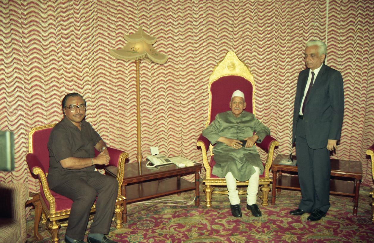 | Caption: | The President of India, Dr. Shankar Dayal Sharma meeting with Shri V.K. Mehrotra, Chief General Manager, State Bank of India, at Rashtrapati Nilayam, Bolarum, in Hyderabad on October 03, 1995. |