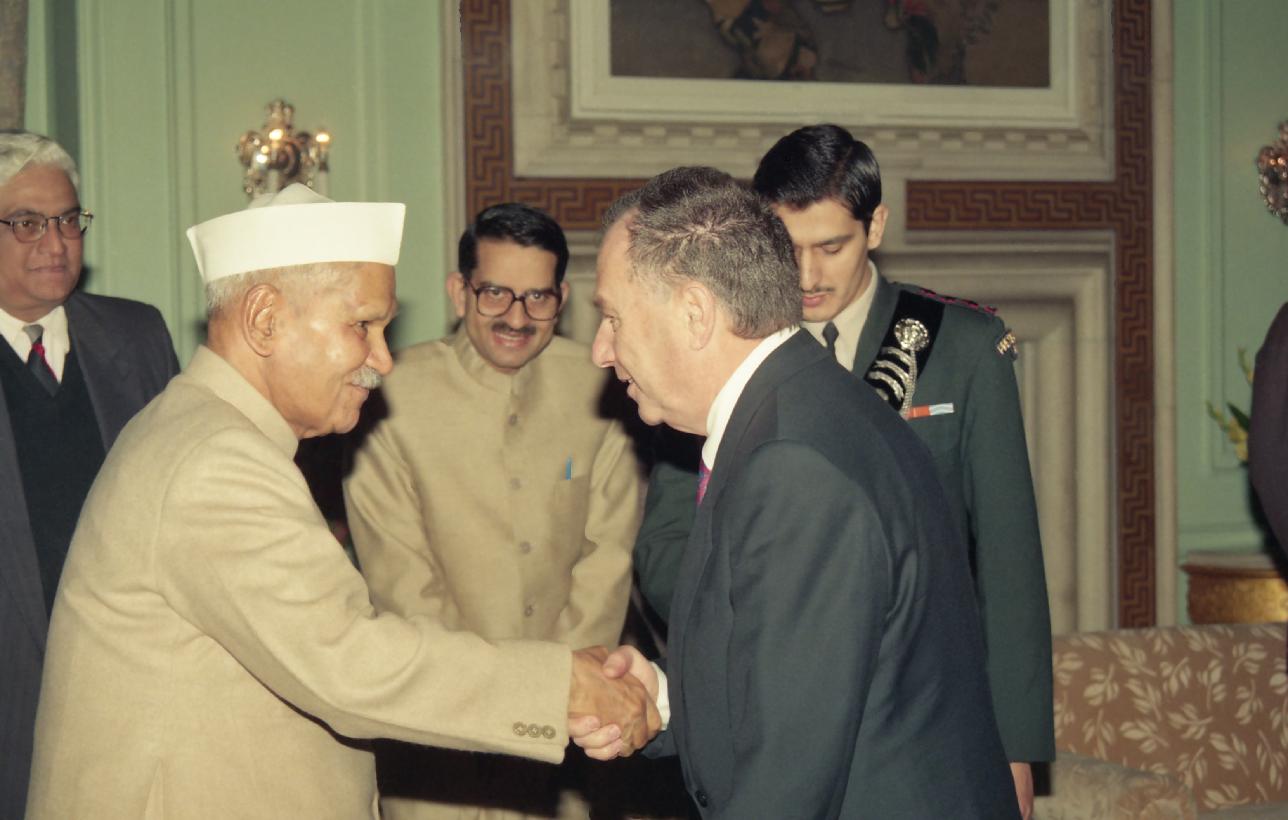 | Caption: | The President of India, Dr. Shankar Dayal Sharma meeting with H.E. Prof. Amnon Rubinstein, Minister of Education & Culture, Government of the State of Israel at Rashtrapati Bhavan in New Delhi on January 19, 1996. |