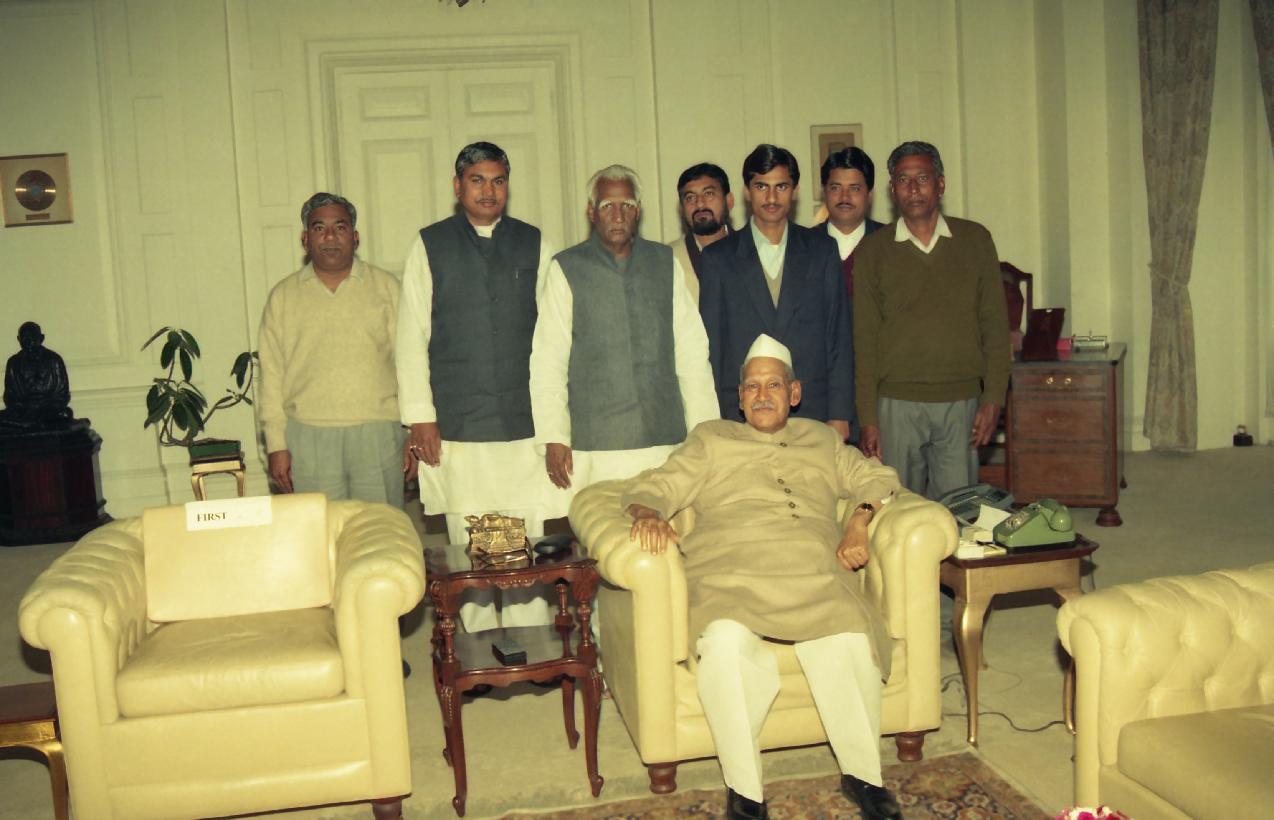 | Caption: | The President of India, Dr. Shankar Dayal Sharma meeting with Shri Srinivas Tiwari, Speaker of MP Legislative Assembly with others at Rashtrapati Bhavan in New Delhi on January 22, 1996. |