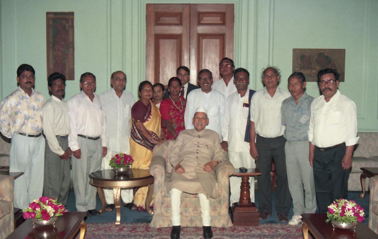 | Caption: | A delegation from Andman & Nicobar Islands led by Shri Manoranjan Bhakta, MP(LS) calling on the President of India, Dr. Shankar Dayal Sharma at Rashtrapati Bhavan in New Delhi on November 18, 1995. |