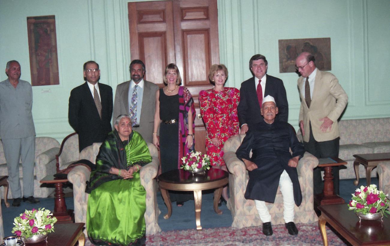 | Caption: | The President of India, Dr. Shankar Dayal Sharma meeting with US Ambassador in India, Mr. Frank G. Wisnerwith alongwith a delegation from US at Rashtrapati Bhavan in New Delhi on November 15, 1995. |