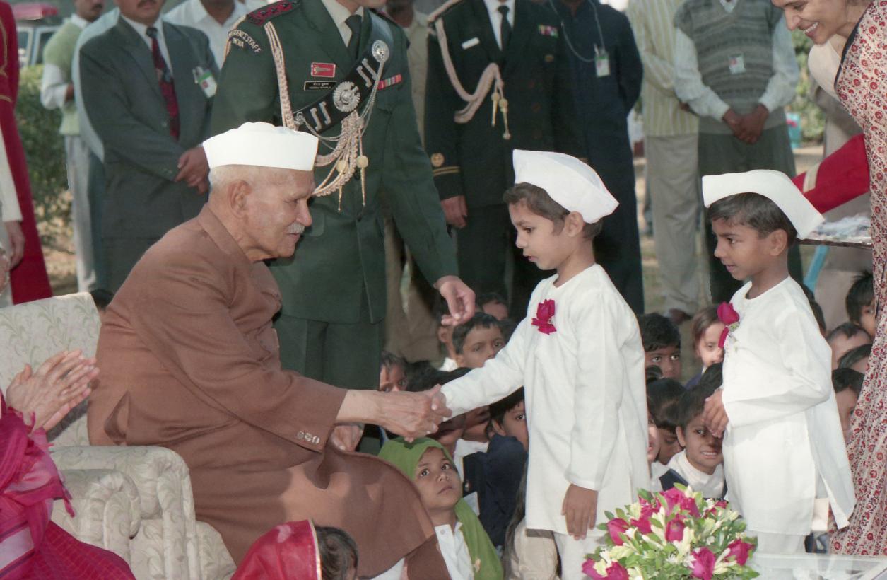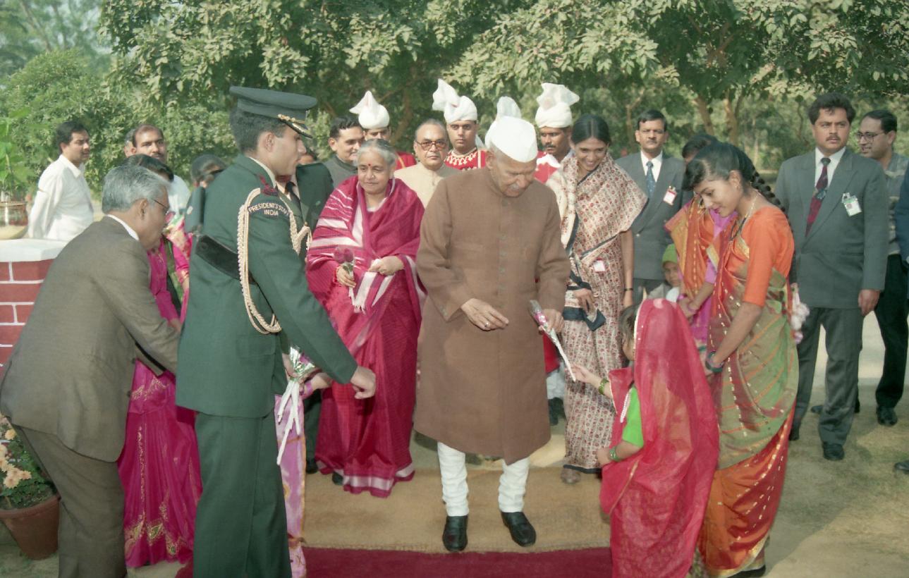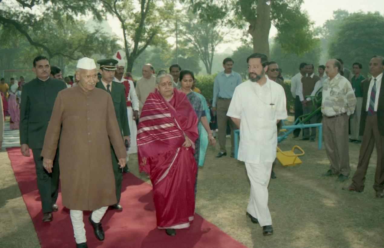 | Caption: | The President of India, Dr. Shankar Dayal Sharma visiting Bal Vatika at Kalyan Kendra, President's Estate in New Delhi on November 14, 1995. |