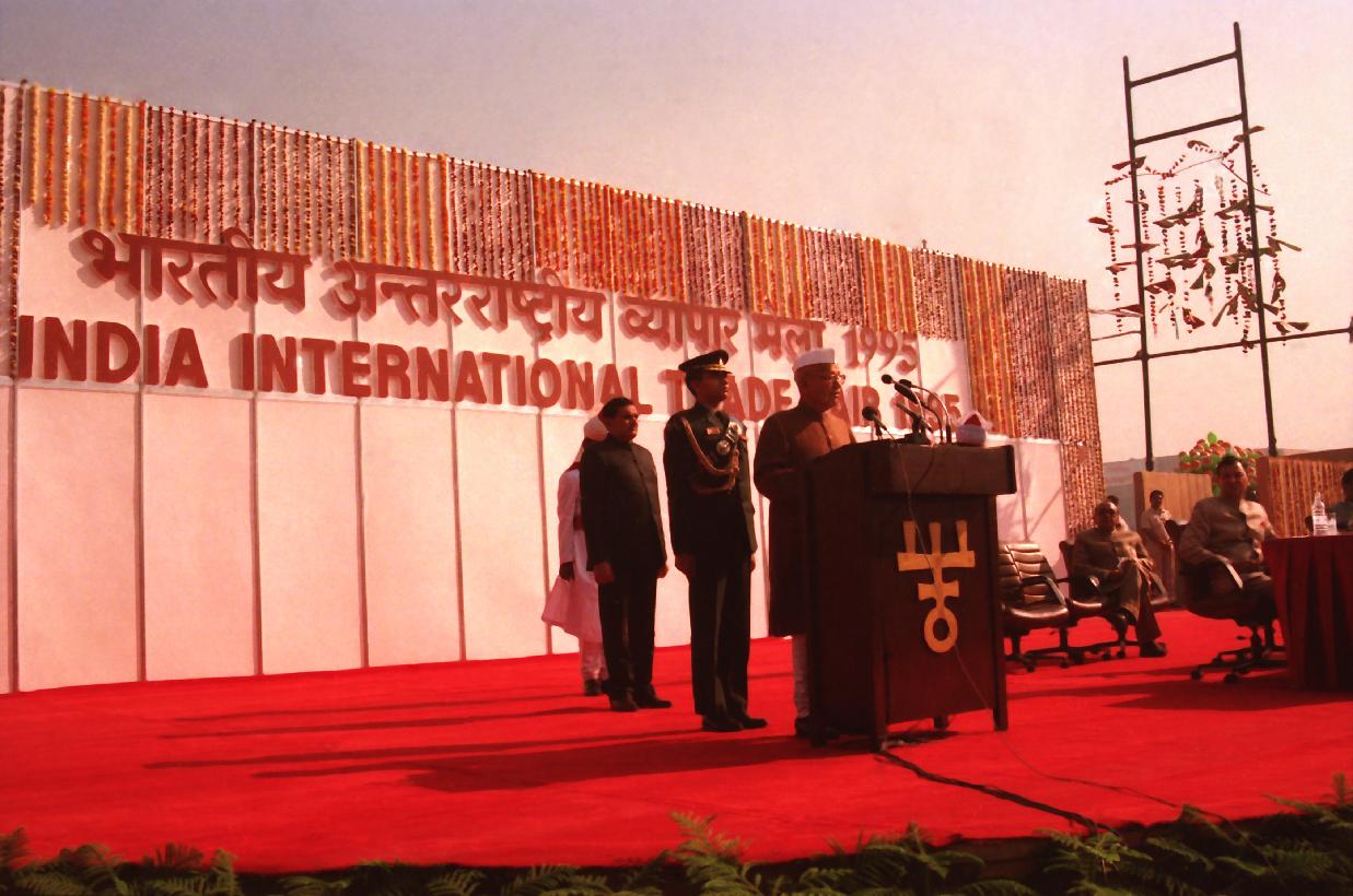 | Caption: | The President of India, Dr. Shankar Dayal Sharma addressing at the inauguration of India International Trade Fair 95 at Pragati Maidan in New Delhi on November 14, 1995. |