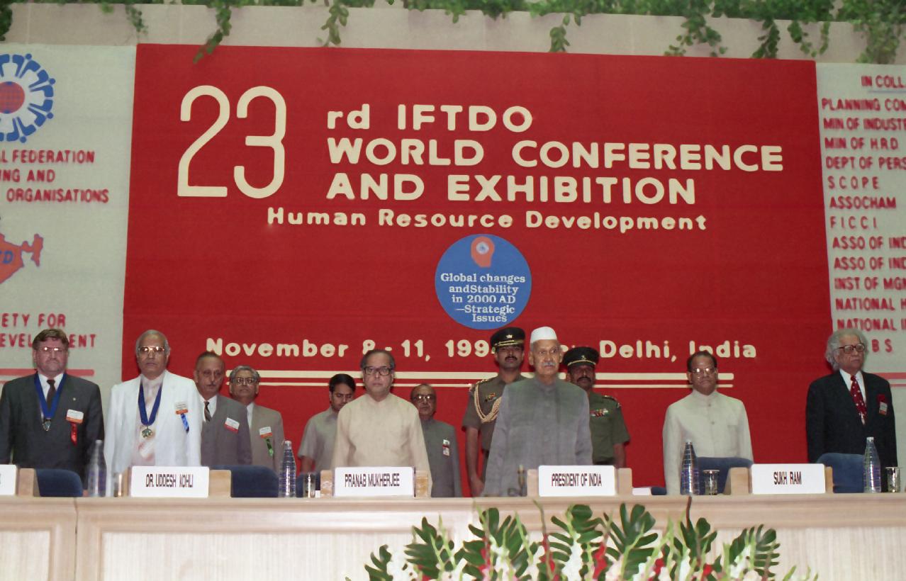 | Caption: | The President of India, Dr. Shankar Dayal Sharma addressing the World Conference 'Global Changes and Stability in 2000 AD-Strategic Issues' at Vigyan Bhavan in New Delhi on November 08, 1994. |