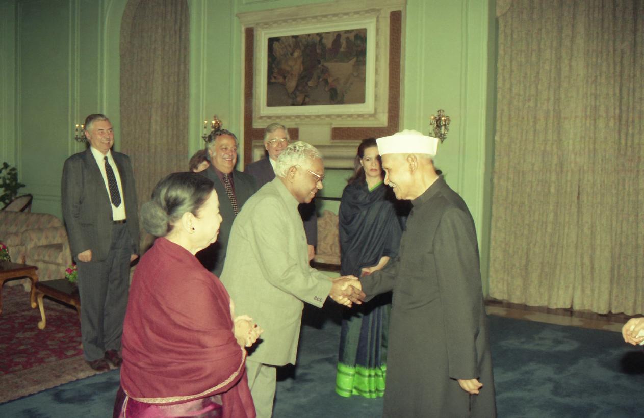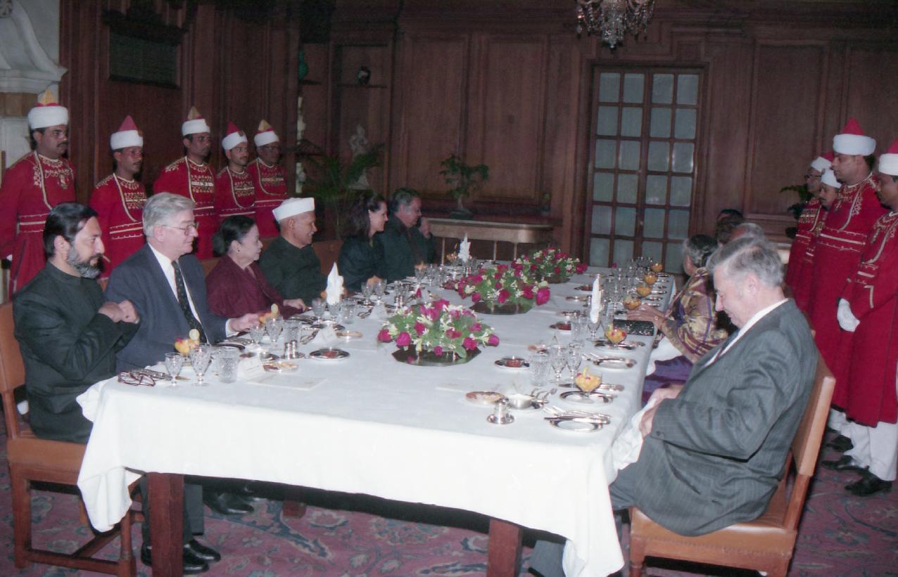 | Caption: | The President of India, Dr. Shankar Dayal Sharma hosting Dinner to Juri member of Indira Gandhi peace prize at Rashtrapati Bhavan in New Delhi on November 18, 1995. |