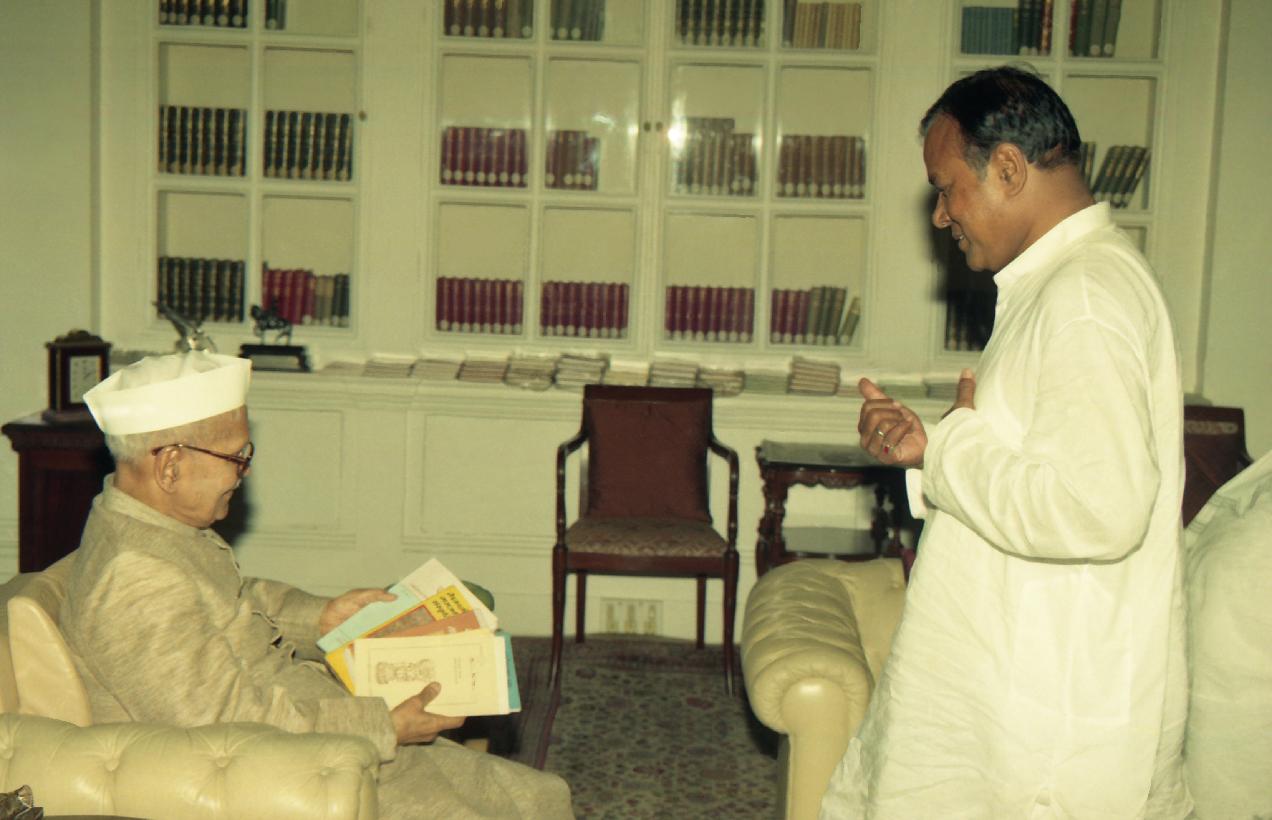 | Caption: | The President of India, Dr. Shankar Dayal Sharma receiving a copy of the book "Ujjala" from Smt. Satya Behin at Rashtrapati Bhavan in New Delhi on August 30, 1995. |