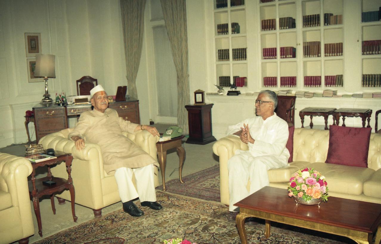 | Caption: | The President of India, Dr. Shankar Dayal Sharma meeting with Shri A.T. Patil, Ex-MP at Rashtrapati Bhavan in New Delhi on August 23, 1995. |