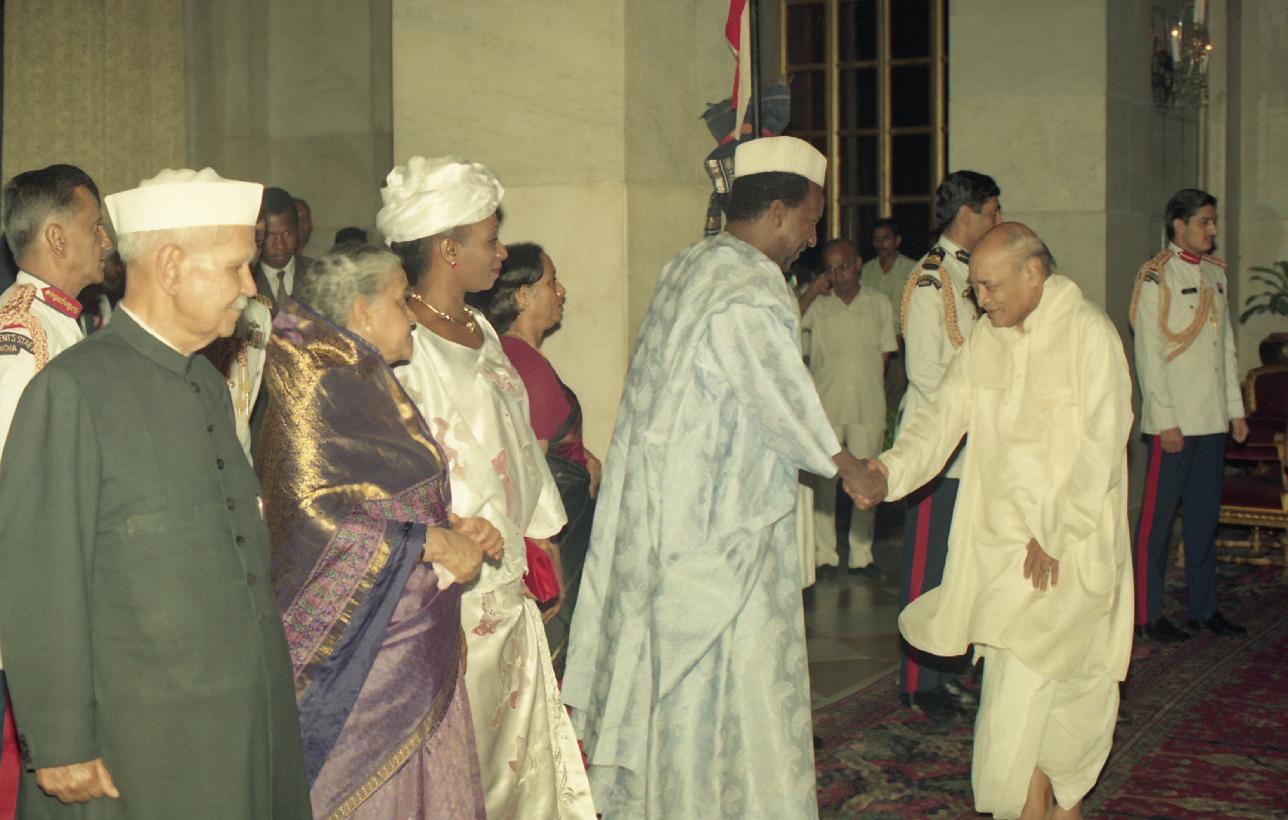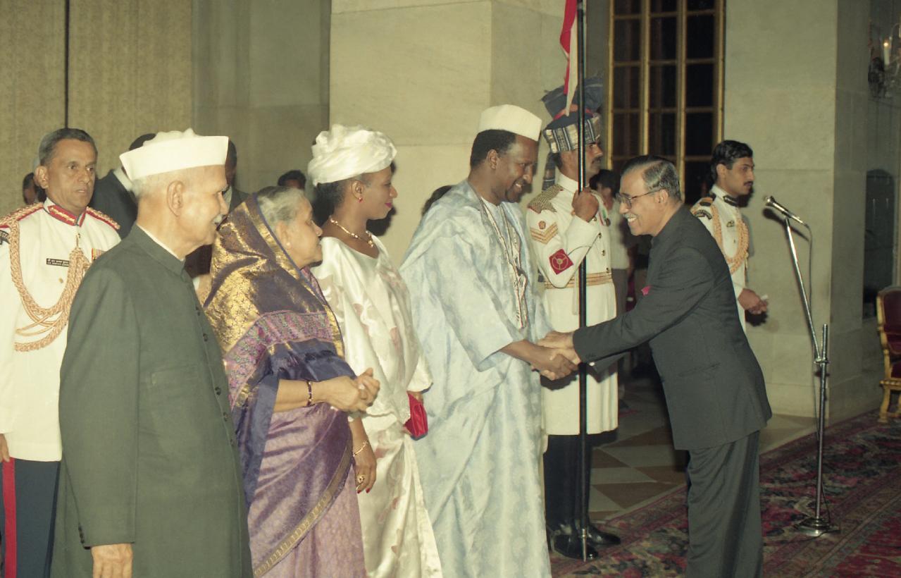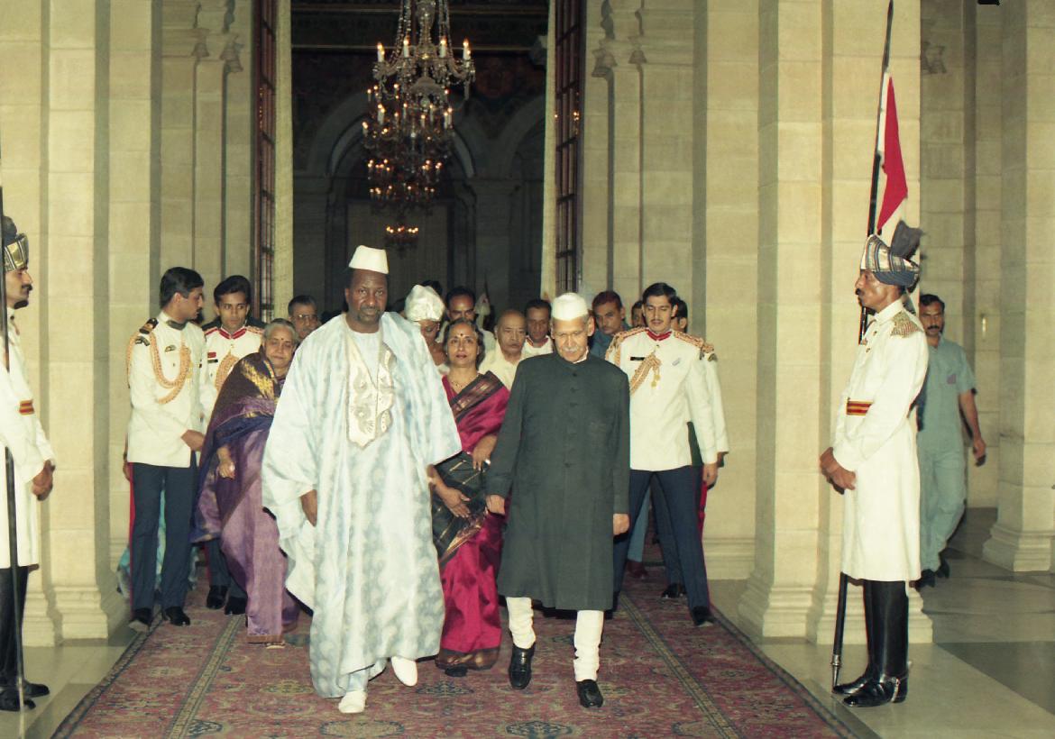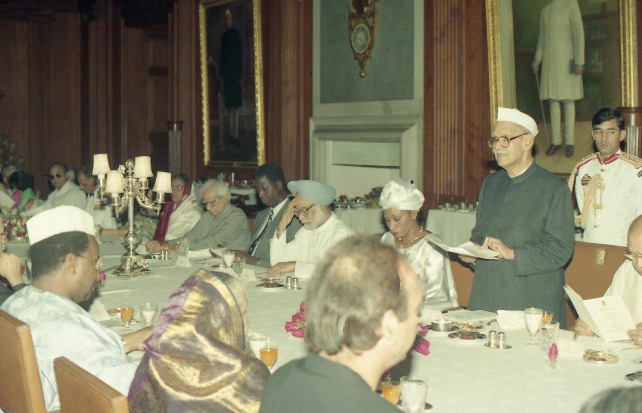 | Caption: | The President of India, Dr. Shankar Dayal Sharma hosting Banquet in honour of H.E. Mr. Alpha Oumar Konare, President of the Republic of Mali & Madame Adame BA Konare, at Rashtrapati Bhavan in New Delhi on August 28, 1995. |