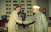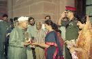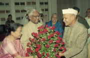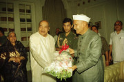 | Caption: | The President of India, Dr. Shankar Dayal Sharma receiving greetings from the Vice-President, Shri K.R. Narayanan, the Prime Minister, Shri P.V. Narasimha Rao, Speaker, Lok Sabha, Shri Shivraj Patil, Council of Ministers and members of public, at Rashtrapati Bhavan in New Delhi on August 19, 1995. |
