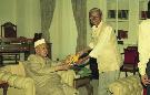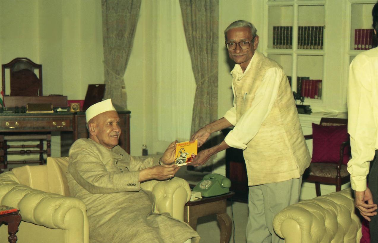 | Caption: | The President of India, Dr. Shankar Dayal Sharma receiving a copy of the book from Shri Sashi Bhushan Pandey with others at Rashtrapati Bhavan in New Delhi on October 25, 1995. |