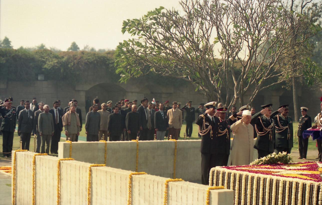 | Caption: | The President of India, Dr. Shankar Dayal Sharma paying tributes to Mahatma Gandhi on Martyr's Day at Rajghat in Delhi on January 30, 1996. |