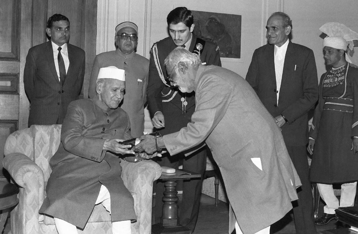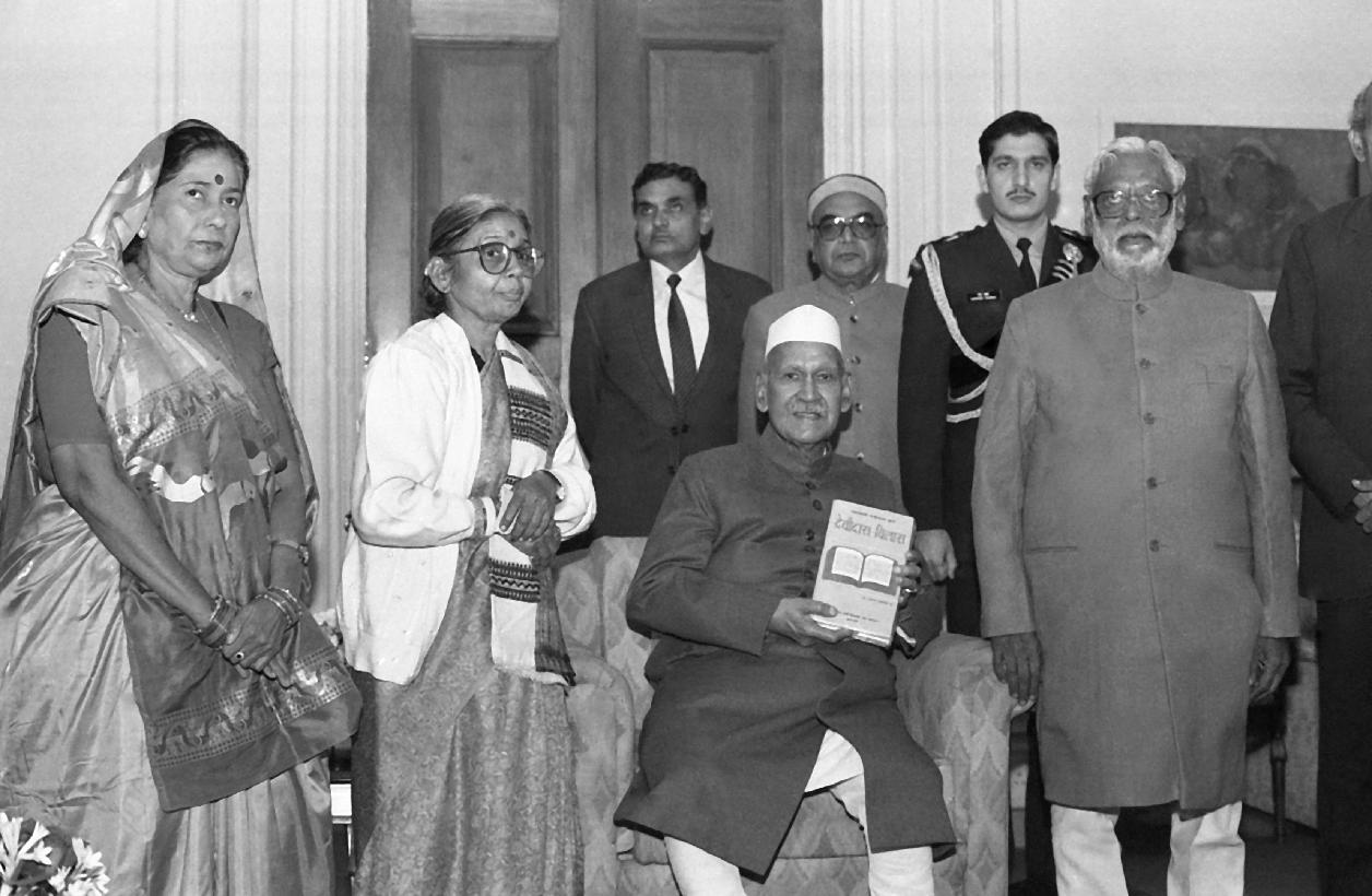 | Caption: | The President of India, Dr. Shankar Dayal Sharma receiving a copy of the book "Devidas Vilas" brought out by Shri Ganesh Varni Sansthan, Varanasi at Rashtrapati Bhavan in New Delhi on November 28, 1995. |