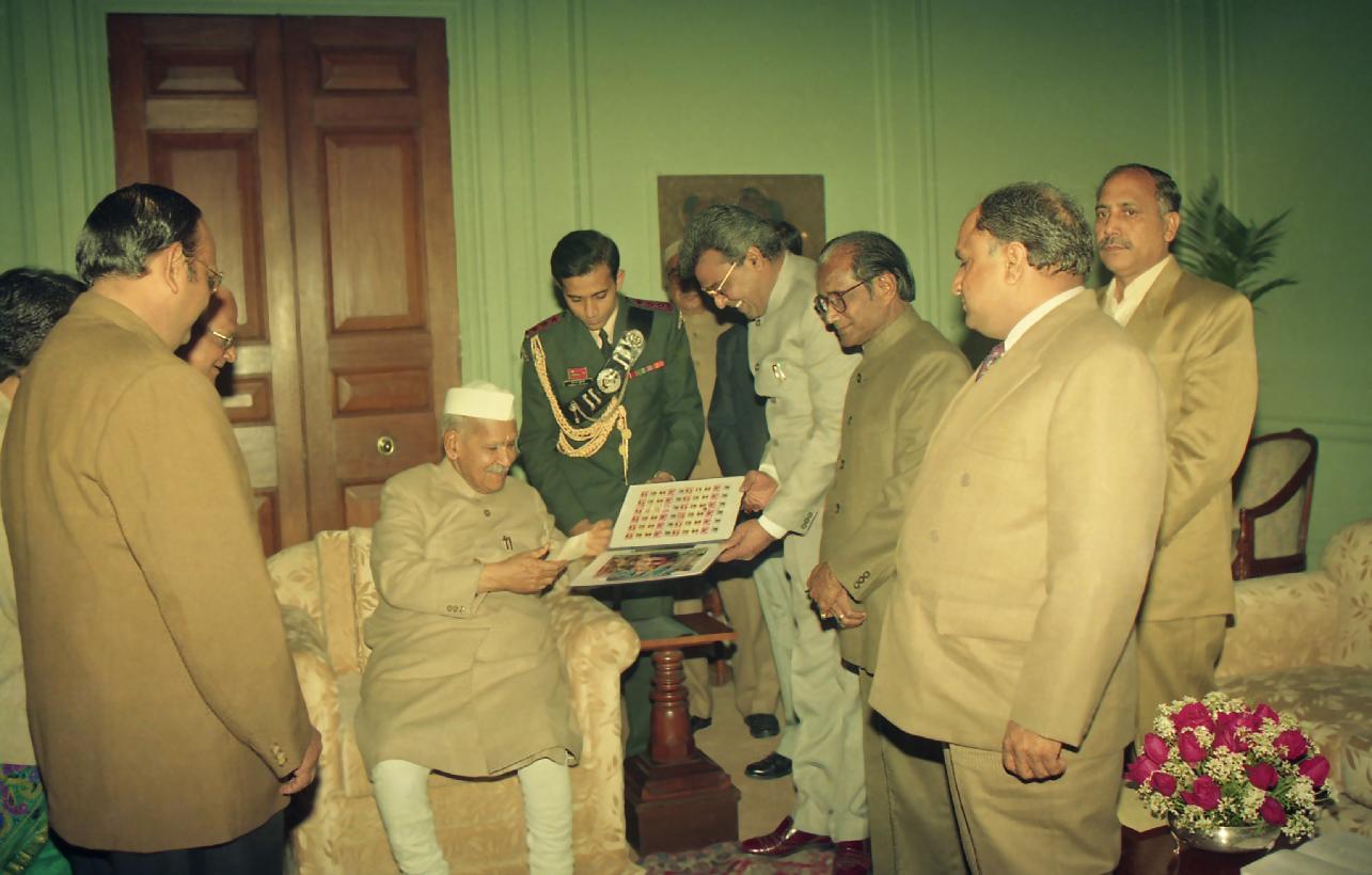 | Caption: | The President of India, Dr. Shankar Dayal Sharma inaugurating of the Leprosy Seals Sale Campaign at Rashtrapati Bhavan in New Delhi on January 30, 1996. |