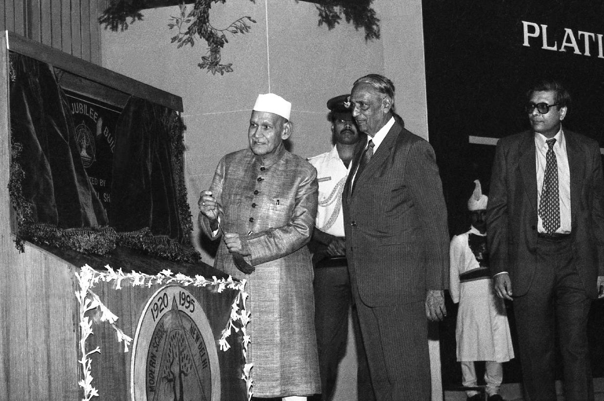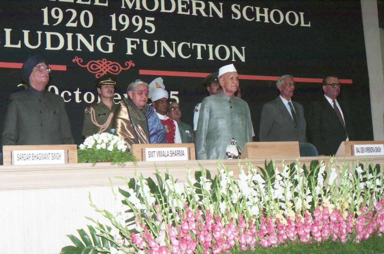 | Caption: | The President of India, Dr. Shankar Dayal Sharma attending the concluding function of the Modern School Platinum Jubilee celebrations, at Vigyan Bhavan in New Delhi on October 21, 1995. |