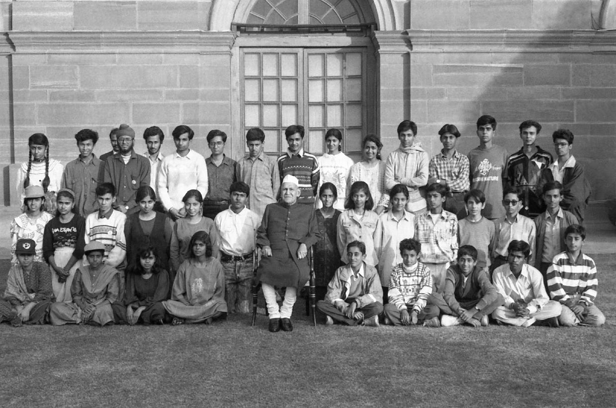 | Caption: | The President of India, Dr. Shankar Dayal Sharma meeting with students attending the 24th National Integration Camp being organised by the Nehru Bal Sangh at Rashtrapati Bhavan in New Delhi on November 28, 1995. |