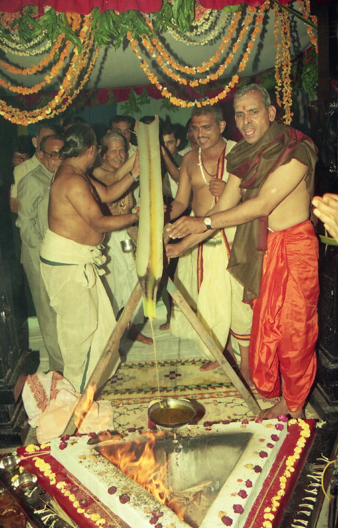 | Caption: | The President of India, Dr. Shankar Dayal Sharma visiting Sri Bhramaramba Devi Temple and performing Chandiyagam, at Srisailam, Andhra Pradesh on October 02, 1995. |