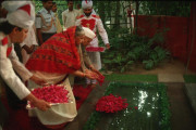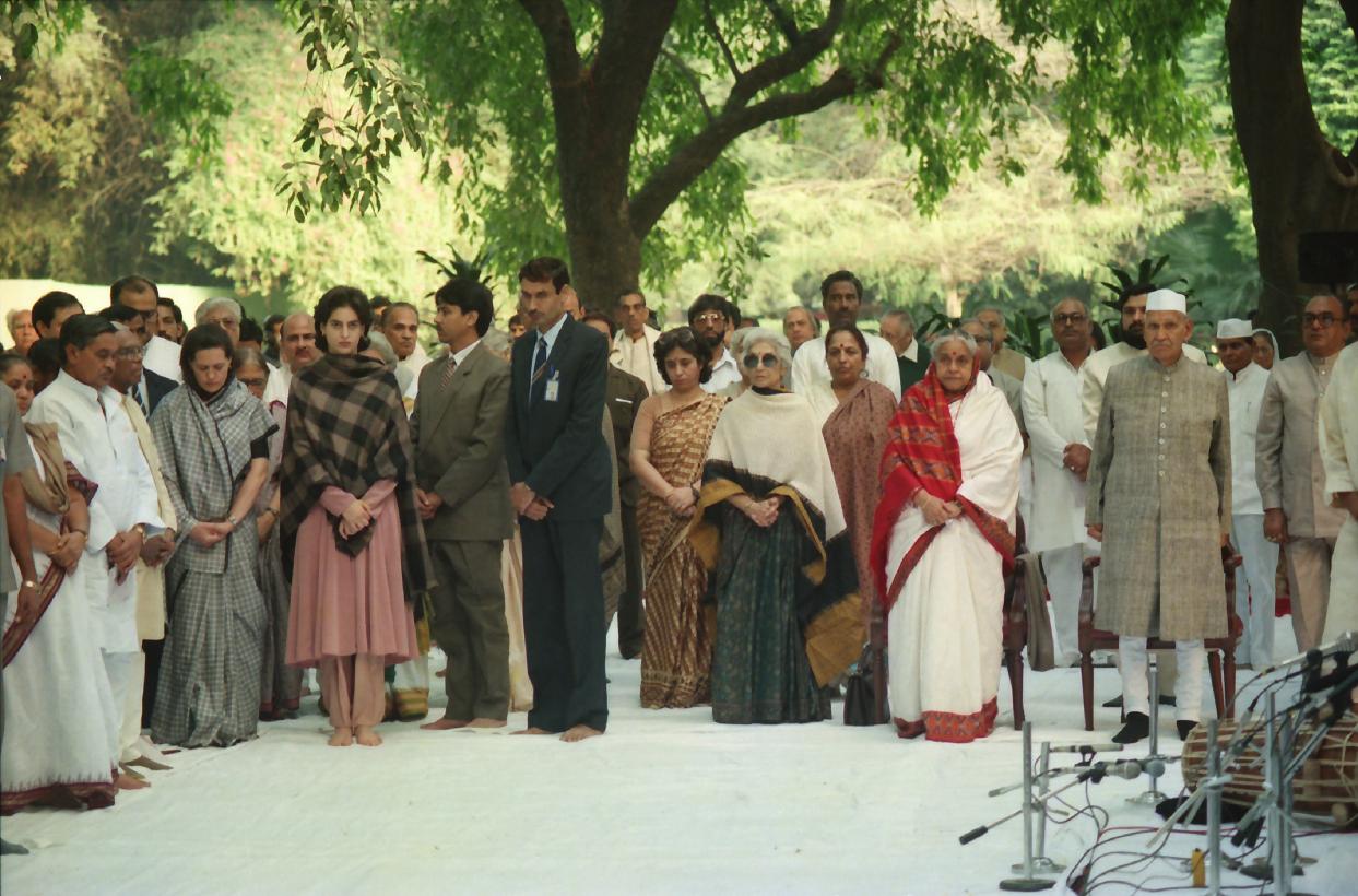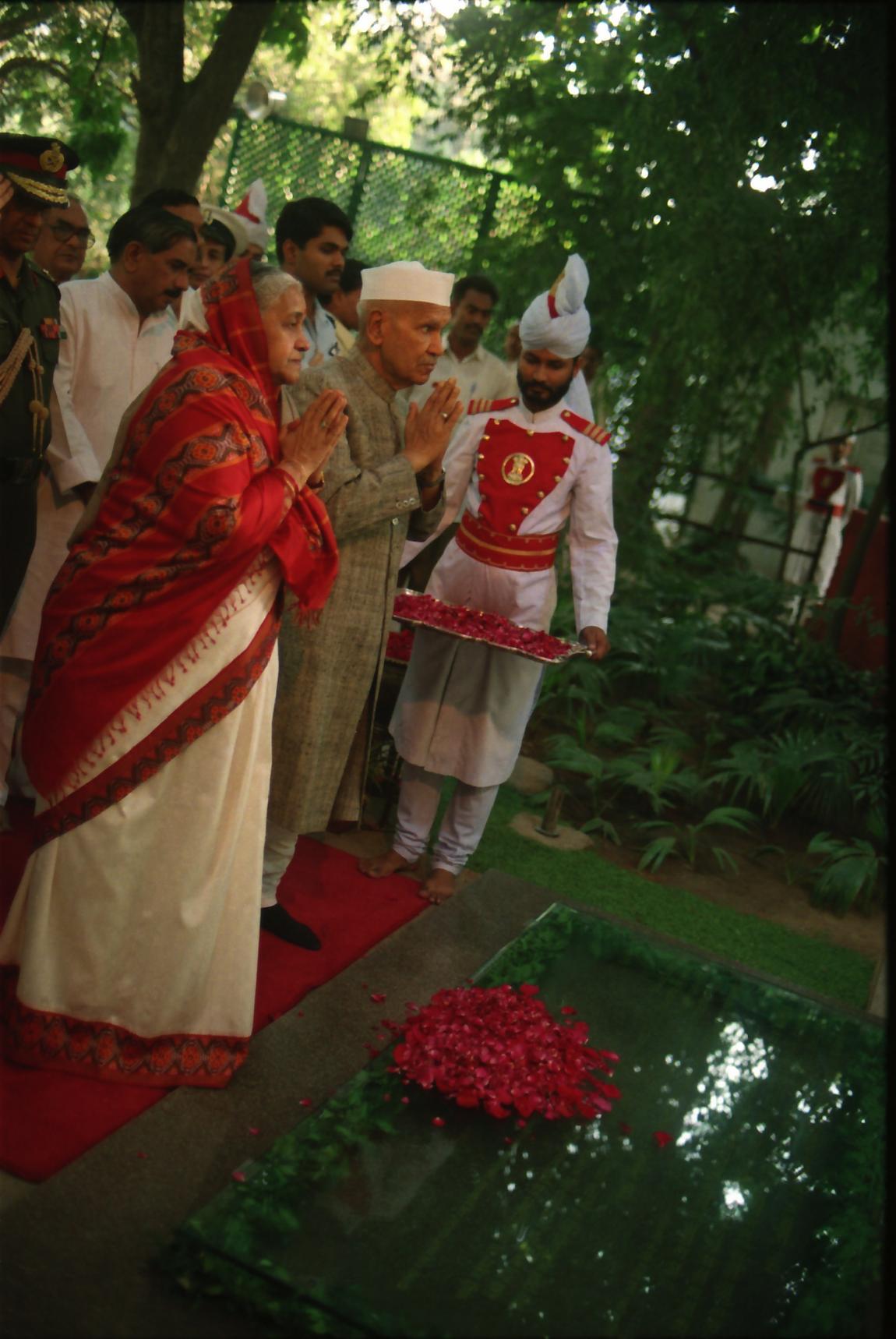 | Caption: | The President of India, Dr. Shankar Dayal Sharma paying floral tributes to Smt. Indira Gandhi on her 11th Death Anniversary, at 1 Safdarjung Road, in New Delhi on October 31, 1995. |