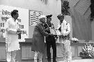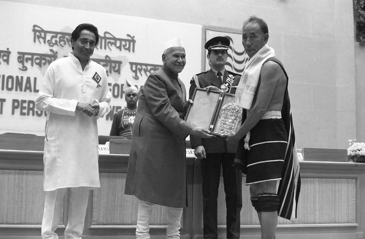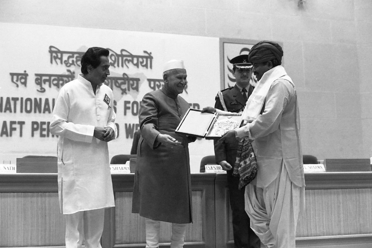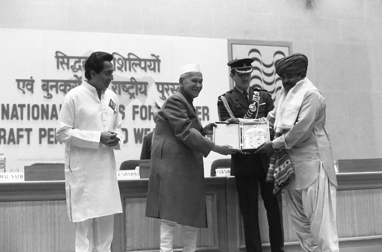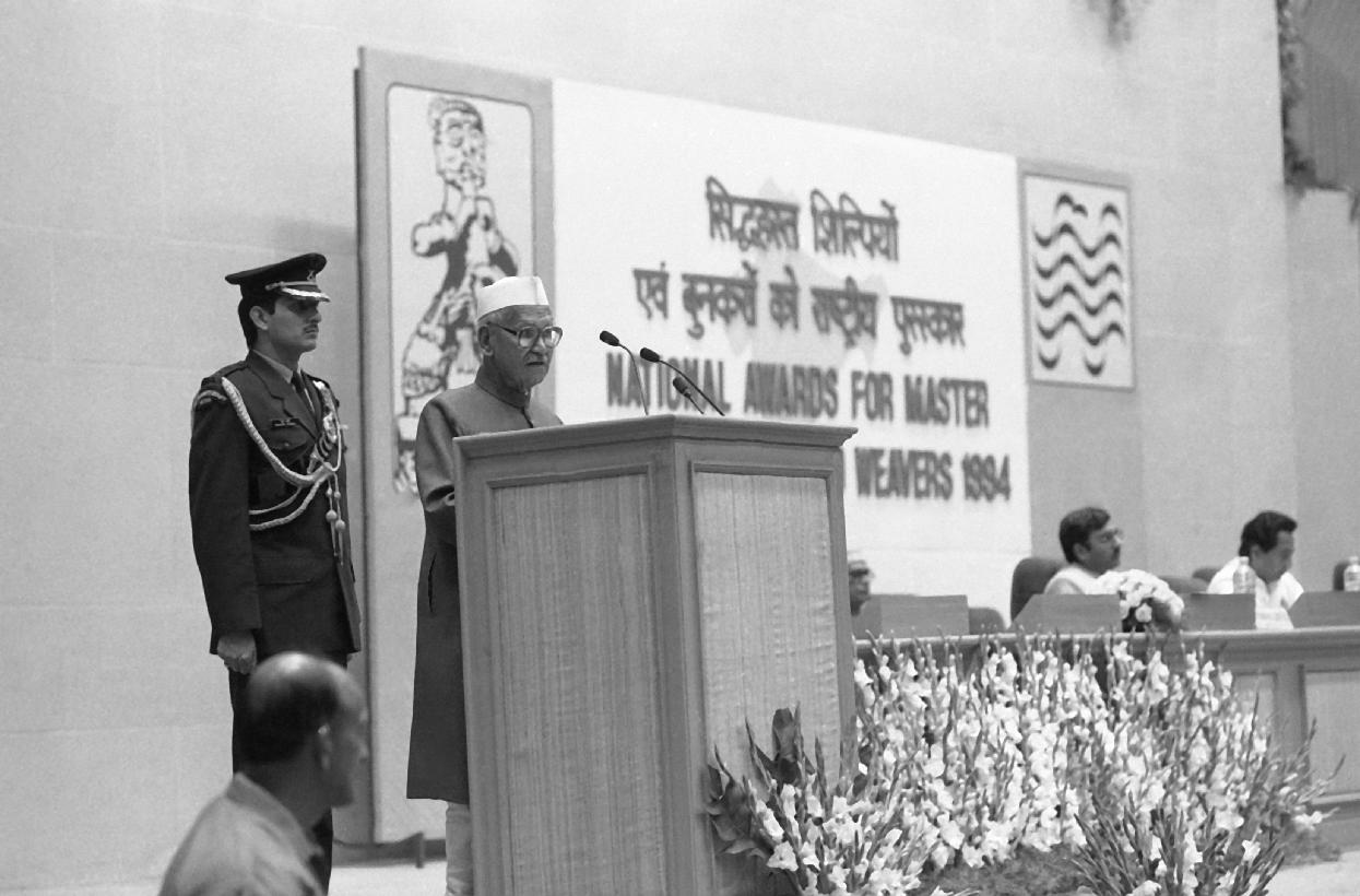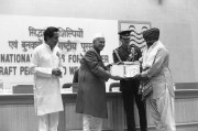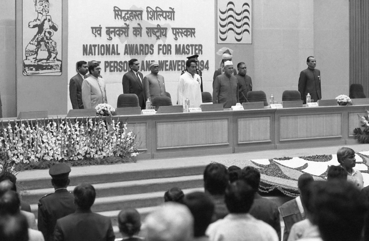 | Caption: | The President of India, Dr. Shankar Dayal Sharma presenting National Awards to Master Craftpersons and Weavers at Vigyan Bhavan in New Delhi on November 28, 1995. |