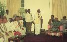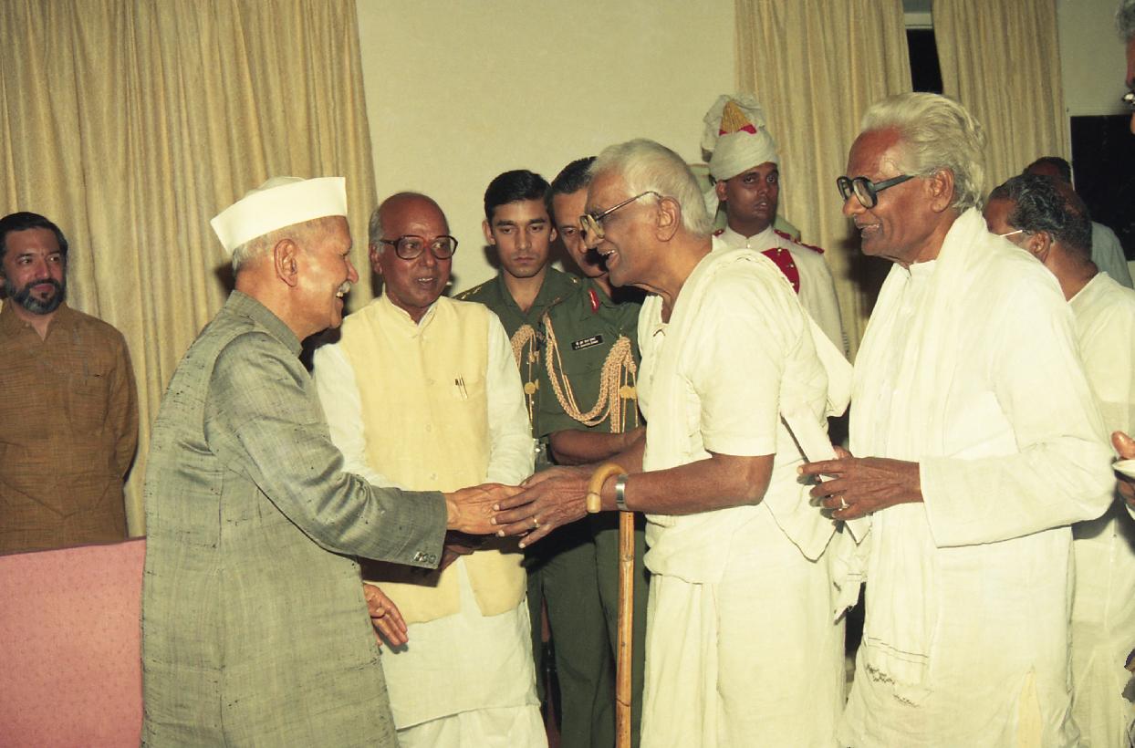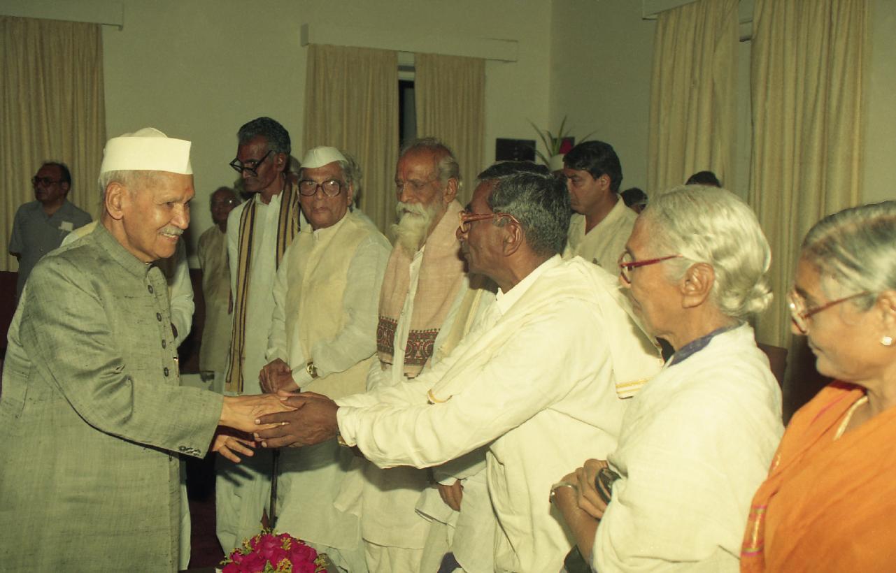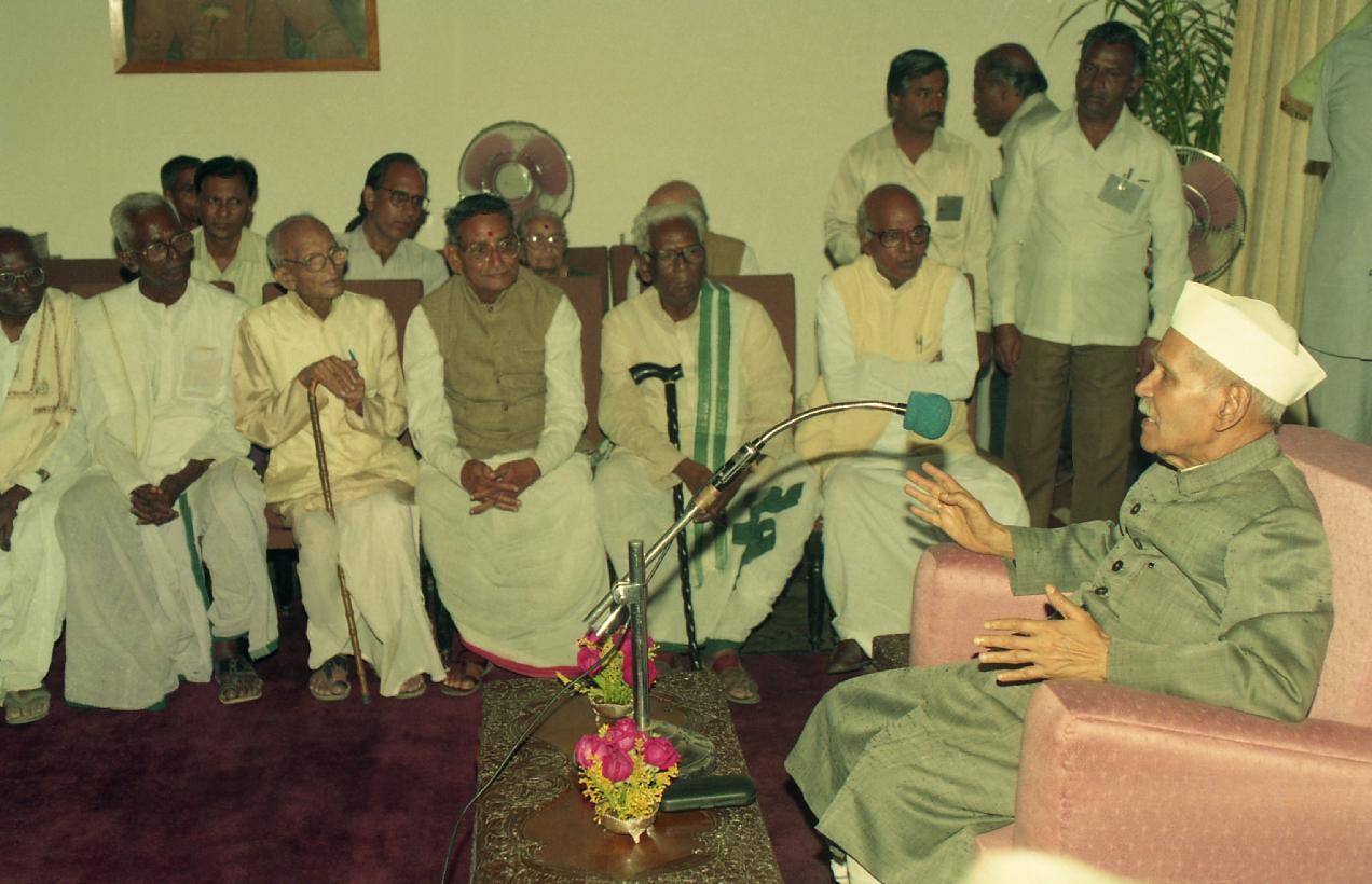 | Caption: | A delegation of Freedom Fighters from All India Freedom Fighters Organisation calling on the President of India, Dr. Shankar Dayal Sharma at Rashtrapati Nilayam, Bolarum, in Hyderabad on October 05, 1995. |