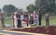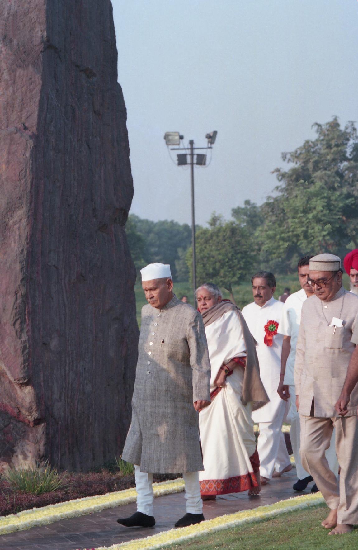 | Caption: | The President of India, Dr. Shankar Dayal Sharma paying floral tributes at the Samadhi of late Smt. Indira Gandhi on the occasion of her 11th Death Anniversary at Shakti Sthal in Delhi on October 31, 1995. |