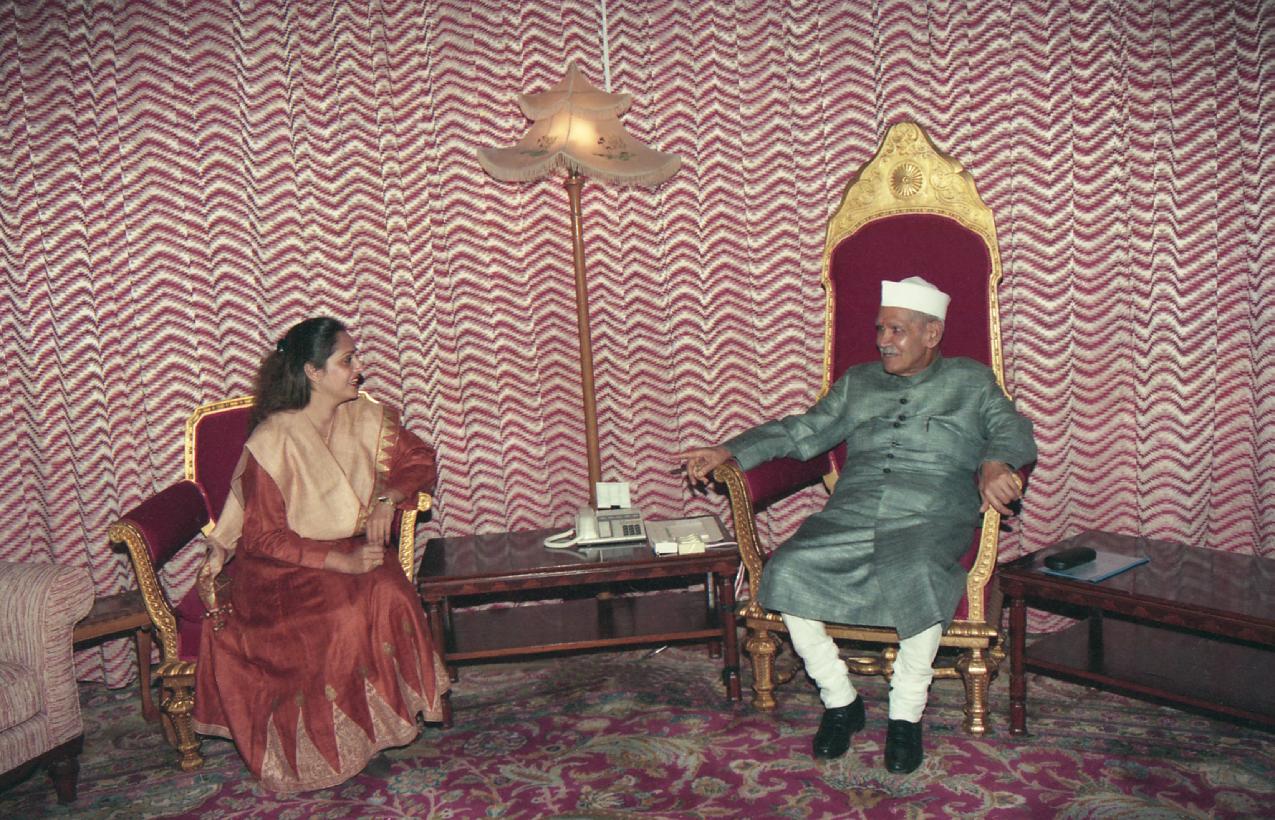 | Caption: | The President of India, Dr. Shankar Dayal Sharma meeting with Miss Jayaprada, Cine Actress, at Rashtrapati Nilayam, Bolarum, in Hyderabad on October 04, 1995. |