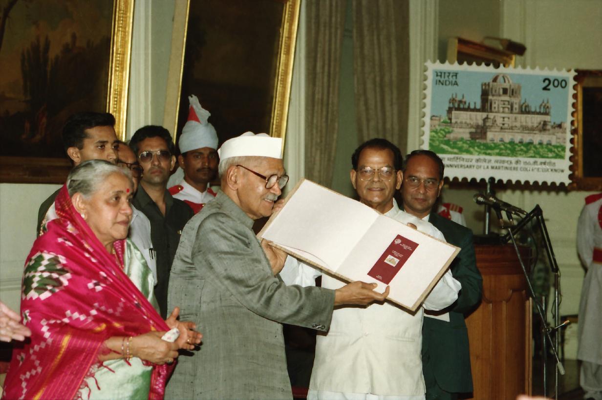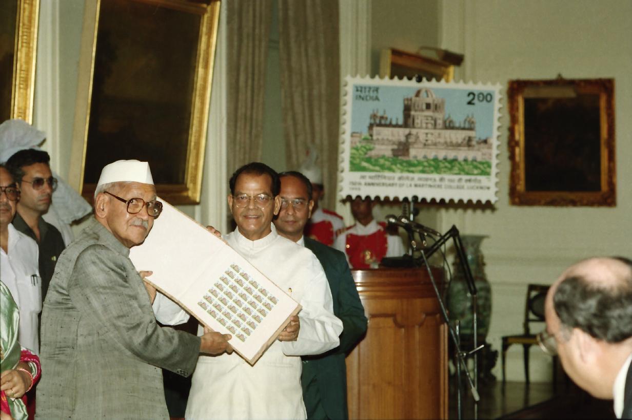 | Caption: | The President of India, Dr. Shankar Dayal Sharma releasing the commemorative stamp of La Martiniere College, Lucknow ,at Rashtrapati Bhavan in New Delhi on October 01, 1995. |