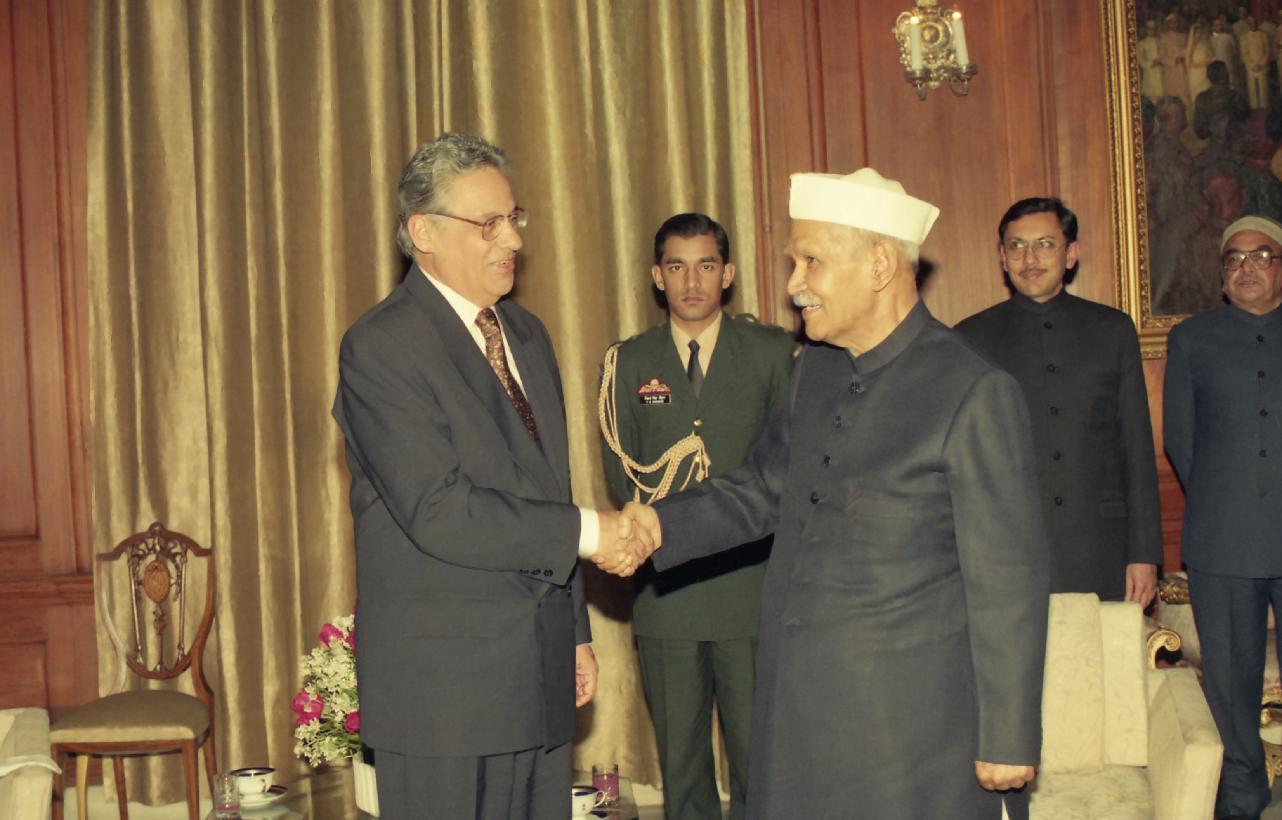 | Caption: | The President of the Federative Republic of Brazil, H.E. Mr. Fernando Henrique Carsodo calling on the President of India, Dr. Shankar Dayal Sharma, at Rashtrapati Bhavan in New Delhi on January 24, 1996. |