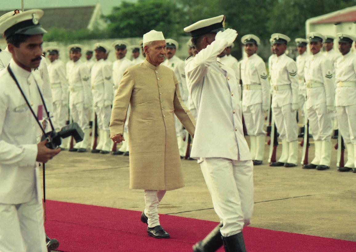 | Caption: | The President of India, Dr. Shankar Dayal Sharma inspecting Guard of Honour, after arriving at Visakhapatnam, Andhra Pradesh on October 06, 1995. |
