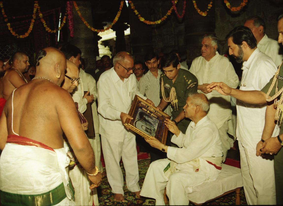 | Caption: | The President of India, Dr. Shankar Dayal Sharma offering Puja, at Simhachalam Temple, Visakhapatnam, in Andhra Pradesh on October 07, 1995. |