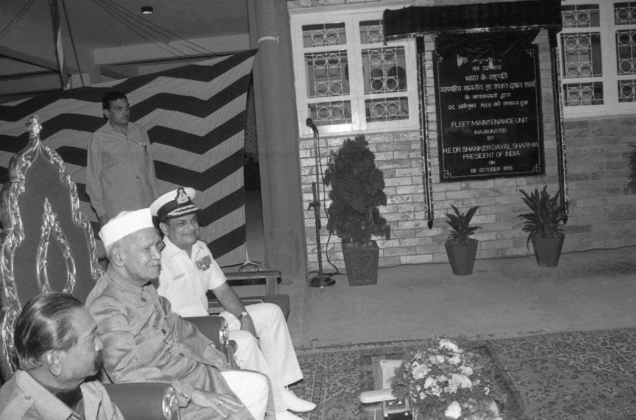| Caption: | The President of India, Dr. Shankar Dayal Sharma inaugurating the Fleet Maintenance Unit Building, at Visakhapatnam, Andhra Pradesh on October 06, 1995. |