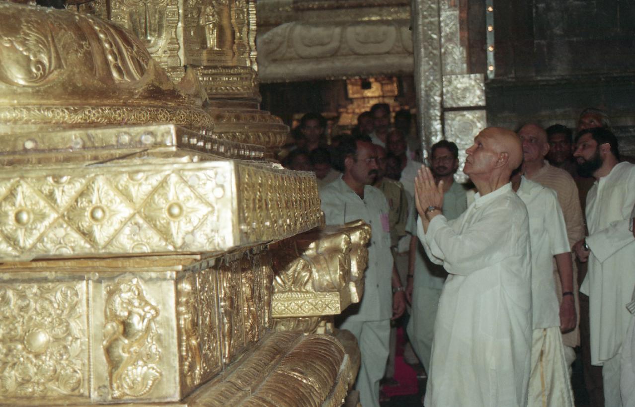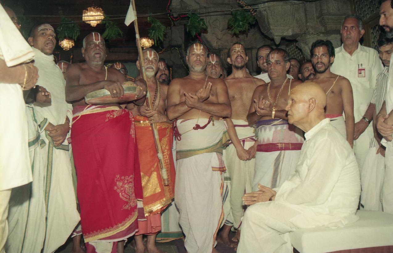 | Caption: | The President of India, Dr. Shankar Dayal Sharma offering Puja, at Sri Vari Temple, Tirumala, in Andhra Pradesh on October 07, 1995. |