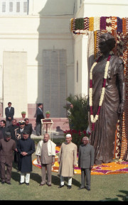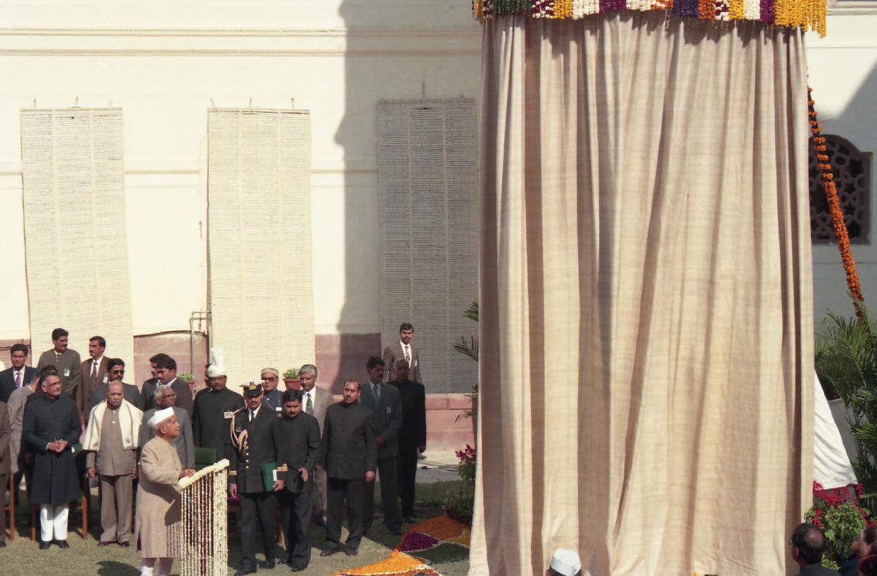 | Caption: | The President of India, Dr. Shankar Dayal Sharma unveiling the statute of Smt. Indira Gandhi and releasing the book 'Indira Gandhi: Speeches in Parliament' at Parliament, in New Delhi on January 27, 1996. |