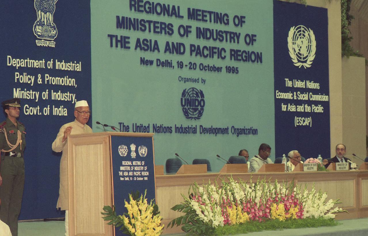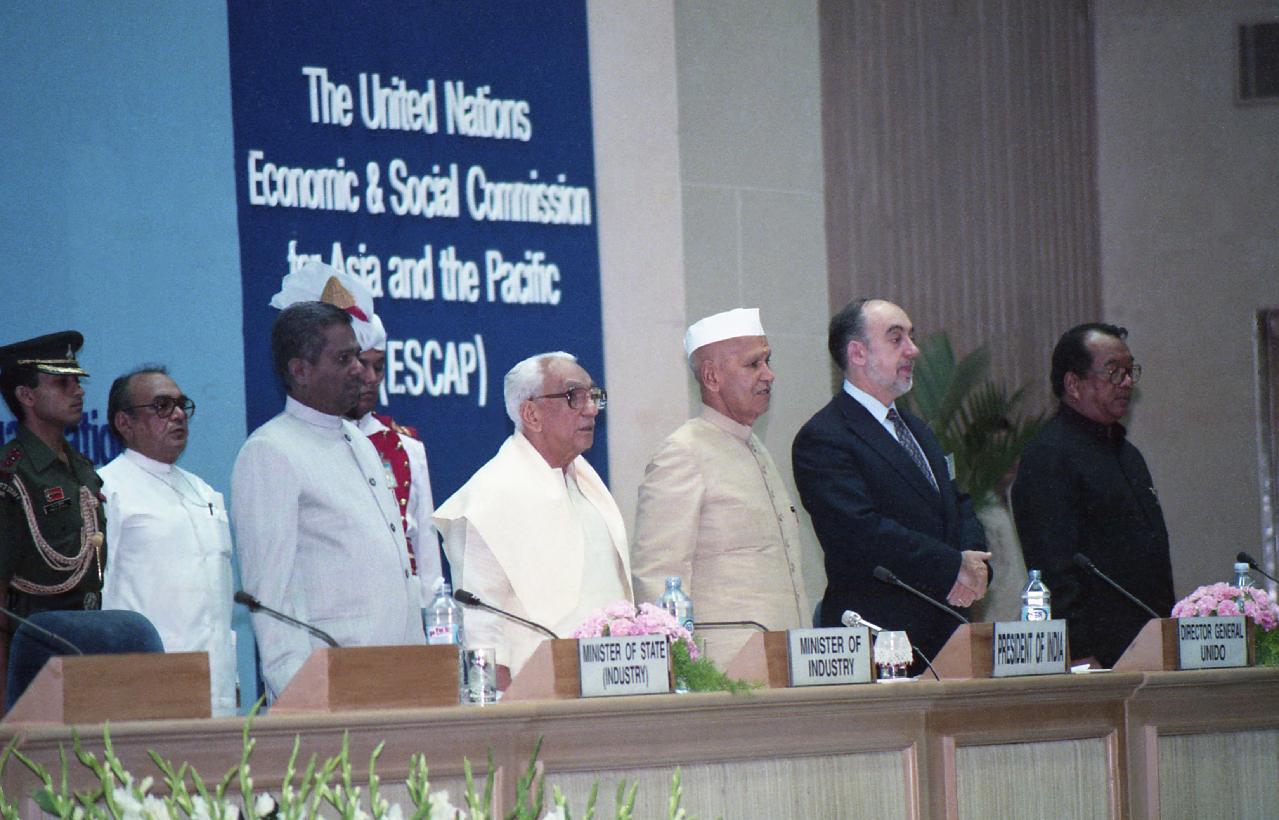 | Caption: | The President of India, Dr. Shankar Dayal Sharma inaugurating the Regional Meeting of Ministers of Industry of Asia-Pacific Region at Vigyan Bhavan in New Delhi on October 19, 1995. |