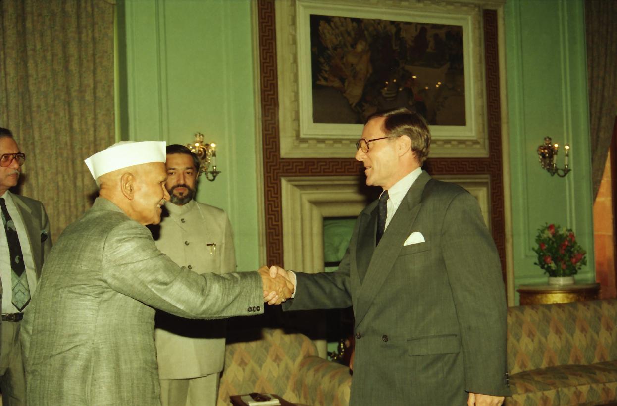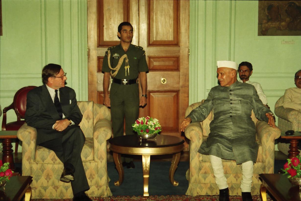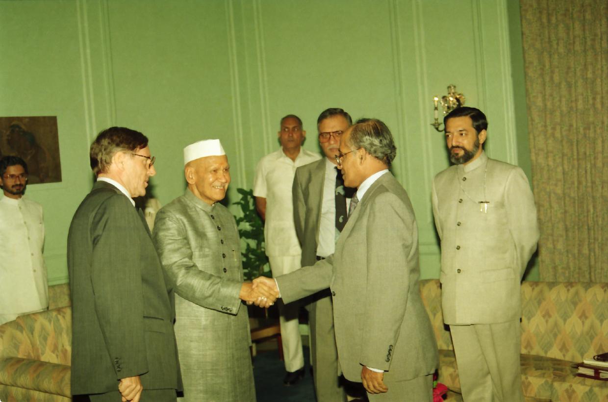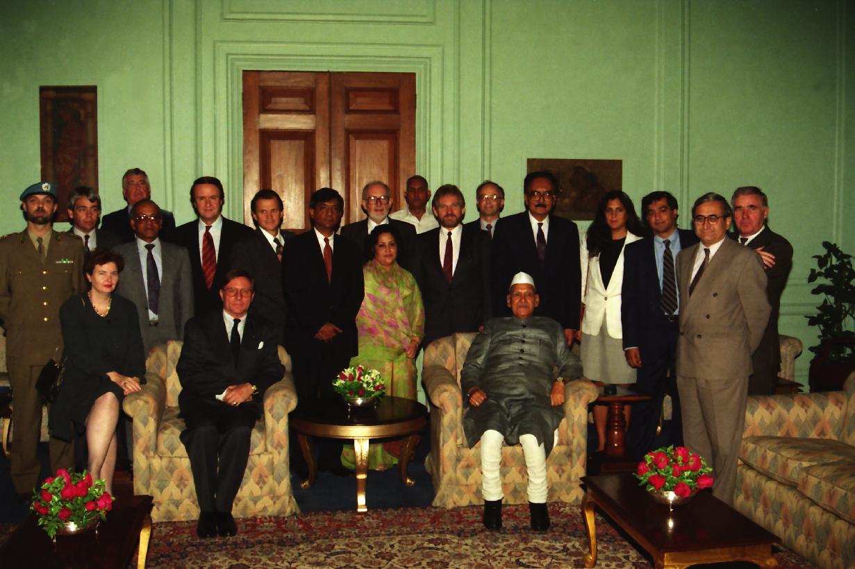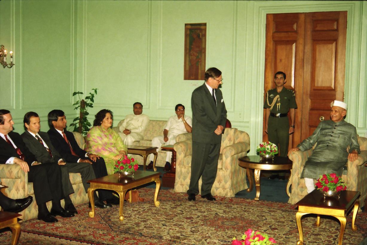 | Caption: | The President of India, Dr. Shankar Dayal Sharma meeting with the Heads of United Nations Agencies in India led by Mr. Hans C. Graf Von Sponeck, United Nations Resident Coordinator in India, at Rashtrapati Bhavan in New Delhi on October 24, 1995. |