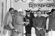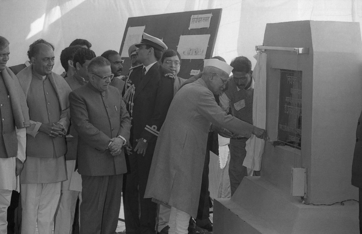 | Caption: | The President of India, Dr. Shankar Dayal Sharma laying the Foundation Stone for the Building of State Election Commission, at Bhopal, in Madhya Pradesh on January 12, 1995. |