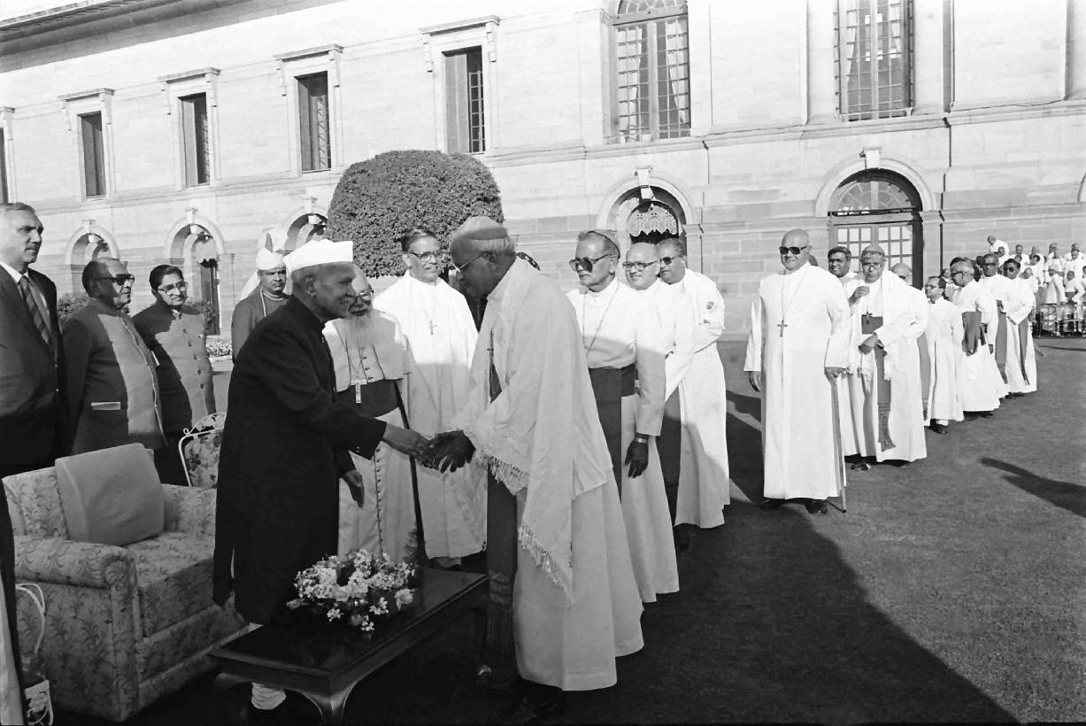 | Caption: | The President of India, Dr. Shankar Dayal Sharma meeting with the Bishops attending the Golden Jubilee Celebrations of the CBCI at Rashtrapati Bhavan in New Delhi on March 01, 1994. |