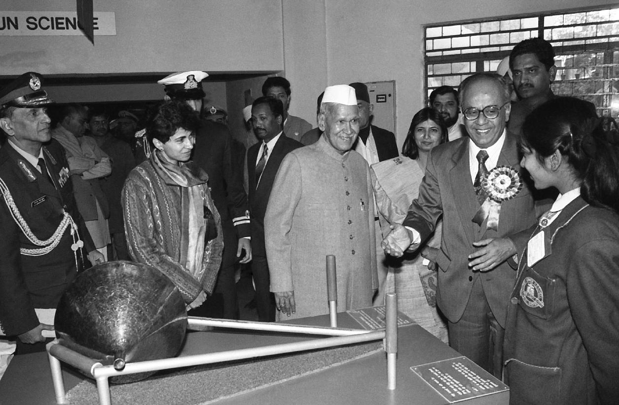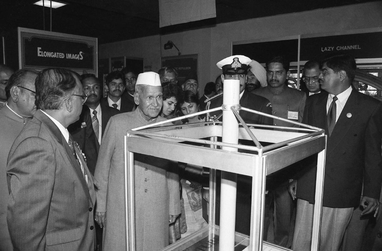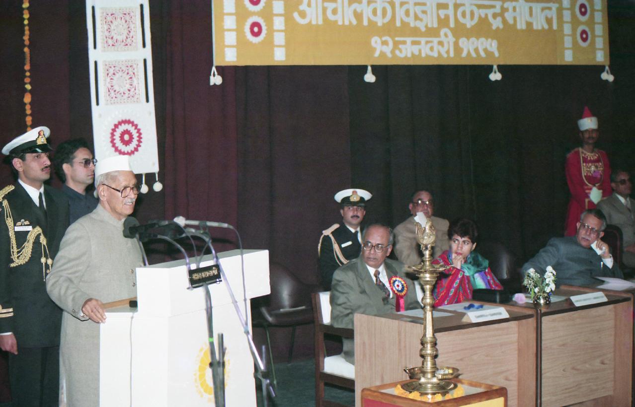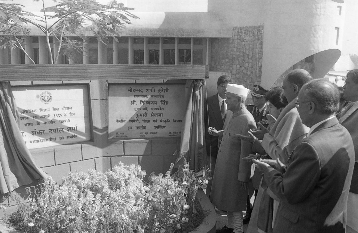 | Caption: | The President of India, Dr. Shankar Dayal Sharma unveiling the Foundation Stone of the Regional Science Centre of the National Council of Science Museums and visiting the Galleries at the Centre, at Bhopal, in Madhya Pradesh on January 12, 1995. |