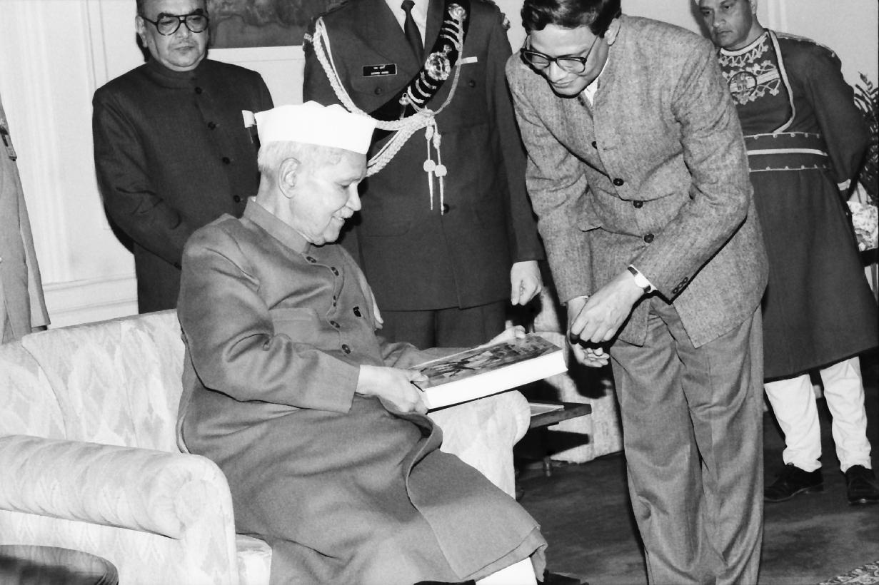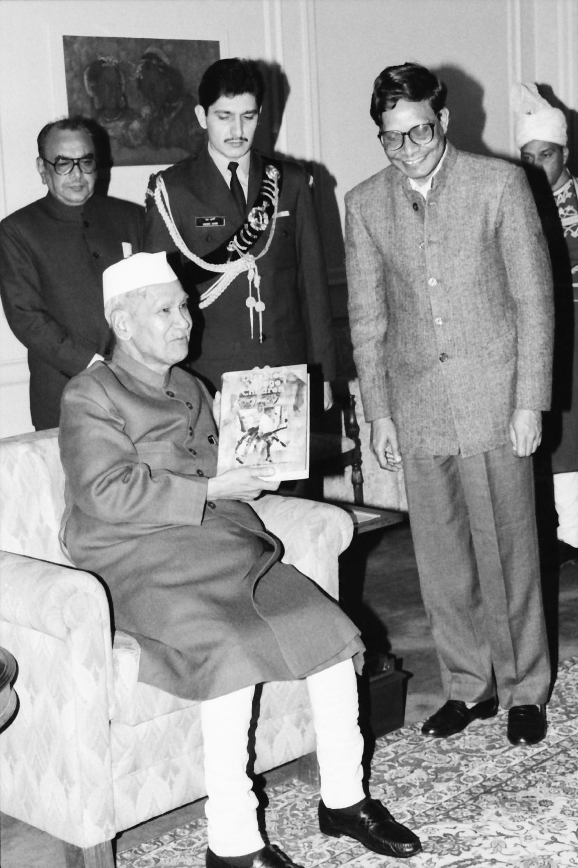 | Caption: | The President of India, Dr. Shankar Dayal Sharma receiving a copy of the book "Disabled Village Children" of the Voluntary Health Association of India at Rashtrapati Bhavan in New Delhi on January 16, 1995. |